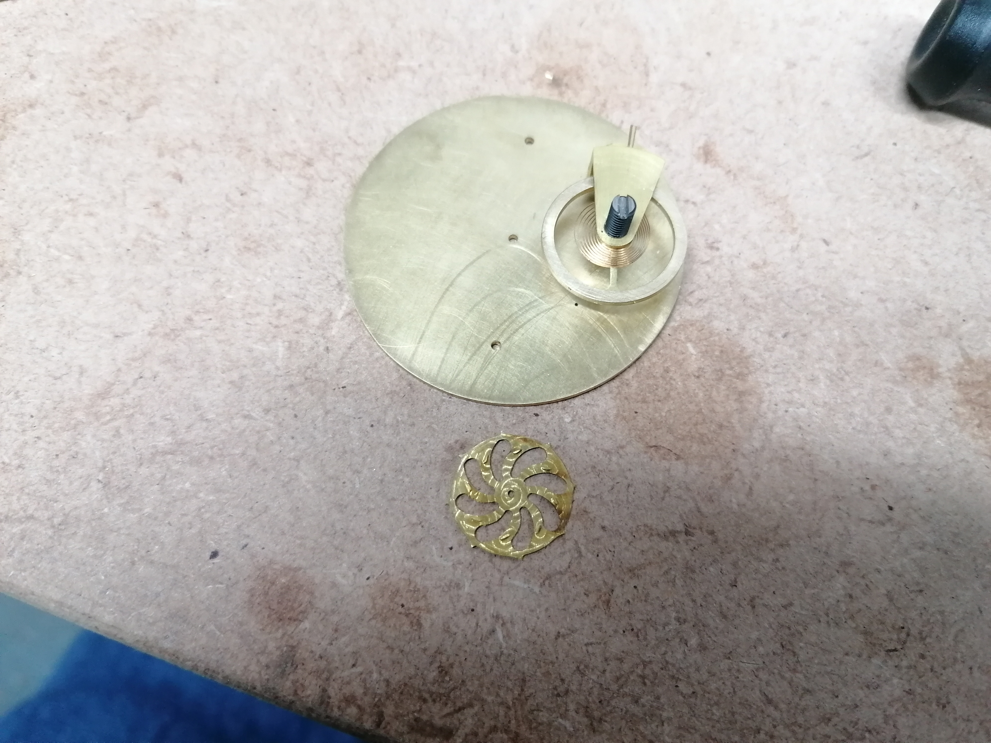 I held it to the mainplate with the bore lined up with its pivot, and a locking tooth towards the balance wheel shaft. It looks like the depthing is too far apart. I think the escape wheel may be able to slip past the locking roller. Need to make a shaft to try it out though. 0.8mm diameter for the main bit, with 0.4mm pivots.