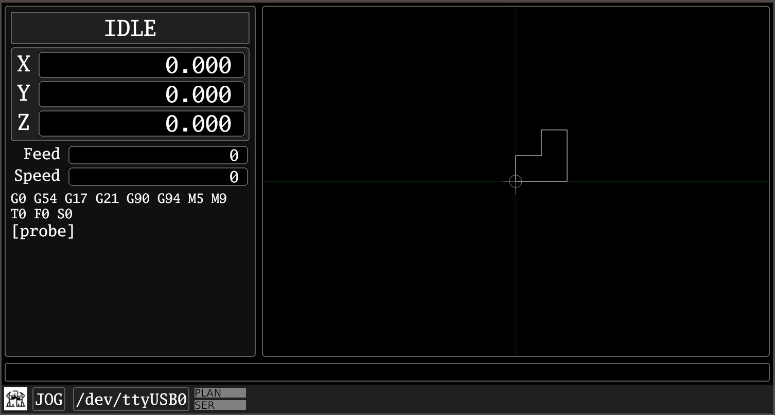 < 2024-01-20 2024-01-22 >Plan today was to tidy up the DRO a bit, and make a plot of the toolpath. That turned out to be much easier than expected, however I am confused about one thing. The image of the toolpath I draw with Gio UI seems to be laggy, even though I'm plotting coordinates extrapolated based on the velocity, same as for the DRO. I screen-recorded it with OBS to make sure I wasn't just confused, and indeed the plot only updates every 5th frame, even though it should be redrawn just as often as the DRO, and shows the same coordinates as the DRO.