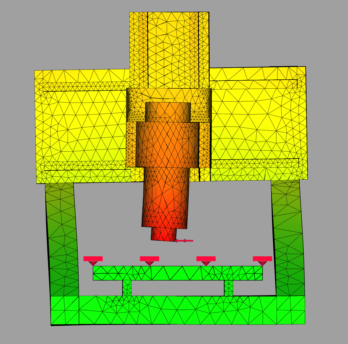 One simplification in the FEA is that the entire machine is made out of uniform "generic aluminium".