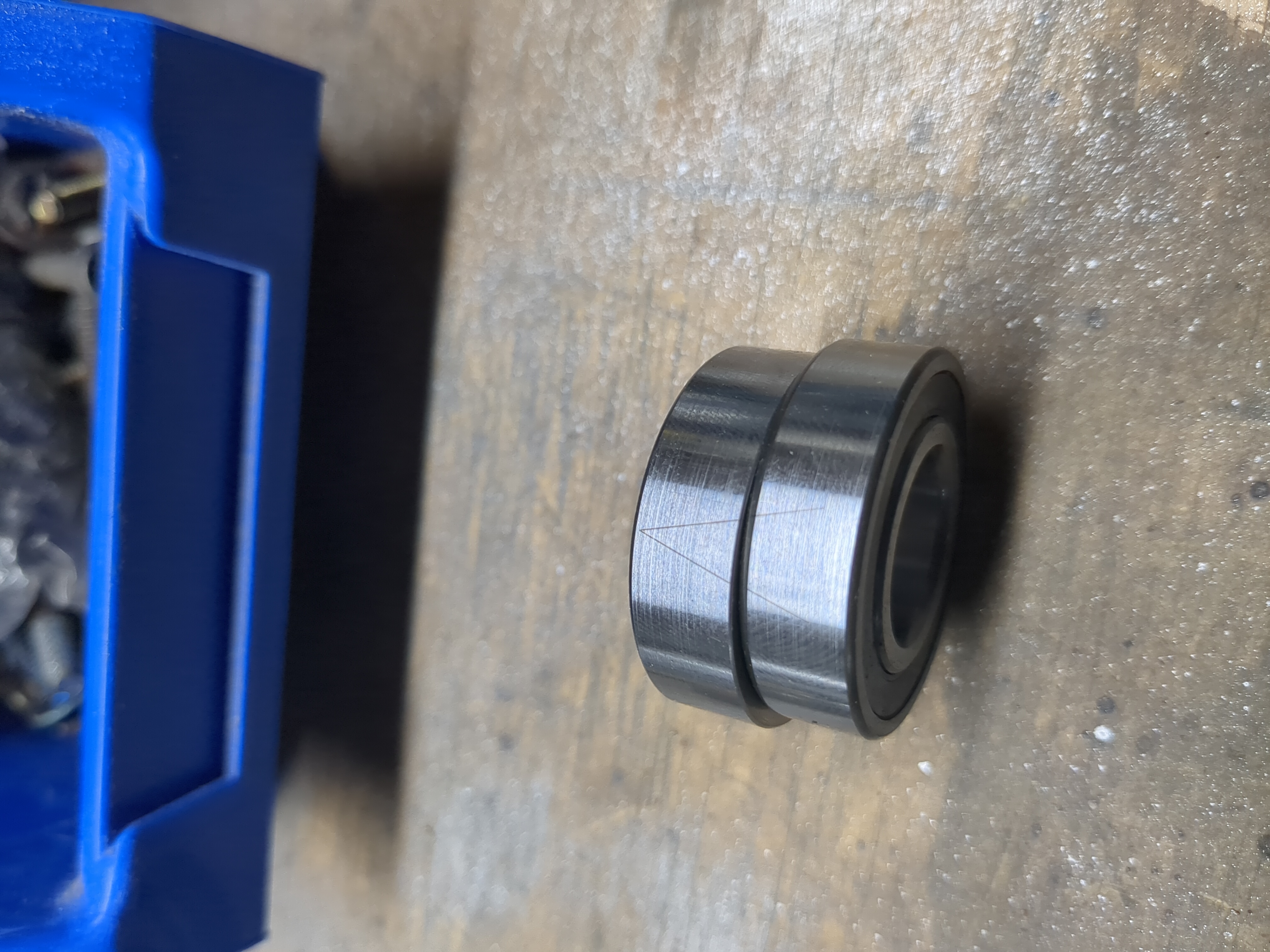 There are 2 bearings at the front, with a marking on the outer race to presumably show the intended direction and order of the 2?