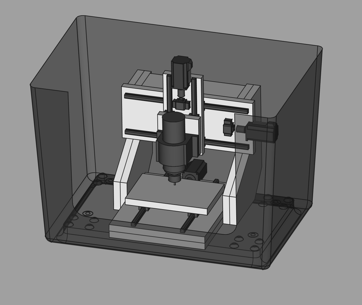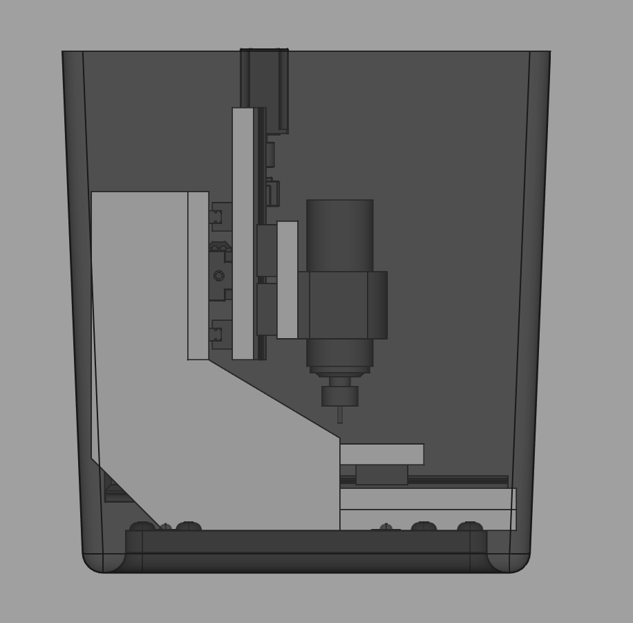 < 2024-02-22 2024-02-25 >First I want to check that the new design still fits in the material I have, and then see if I can tell it that the spindle motor is made out of a different material to the rest of the frame. And potentially also the rails.