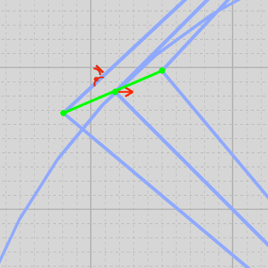 You'll notice 1 line is clear of the escape wheel teeth and one line interferes with them, this is what we want. Now draw a line segment connecting the endpoints of these 2 segments. That line segment is your impulse pallet.