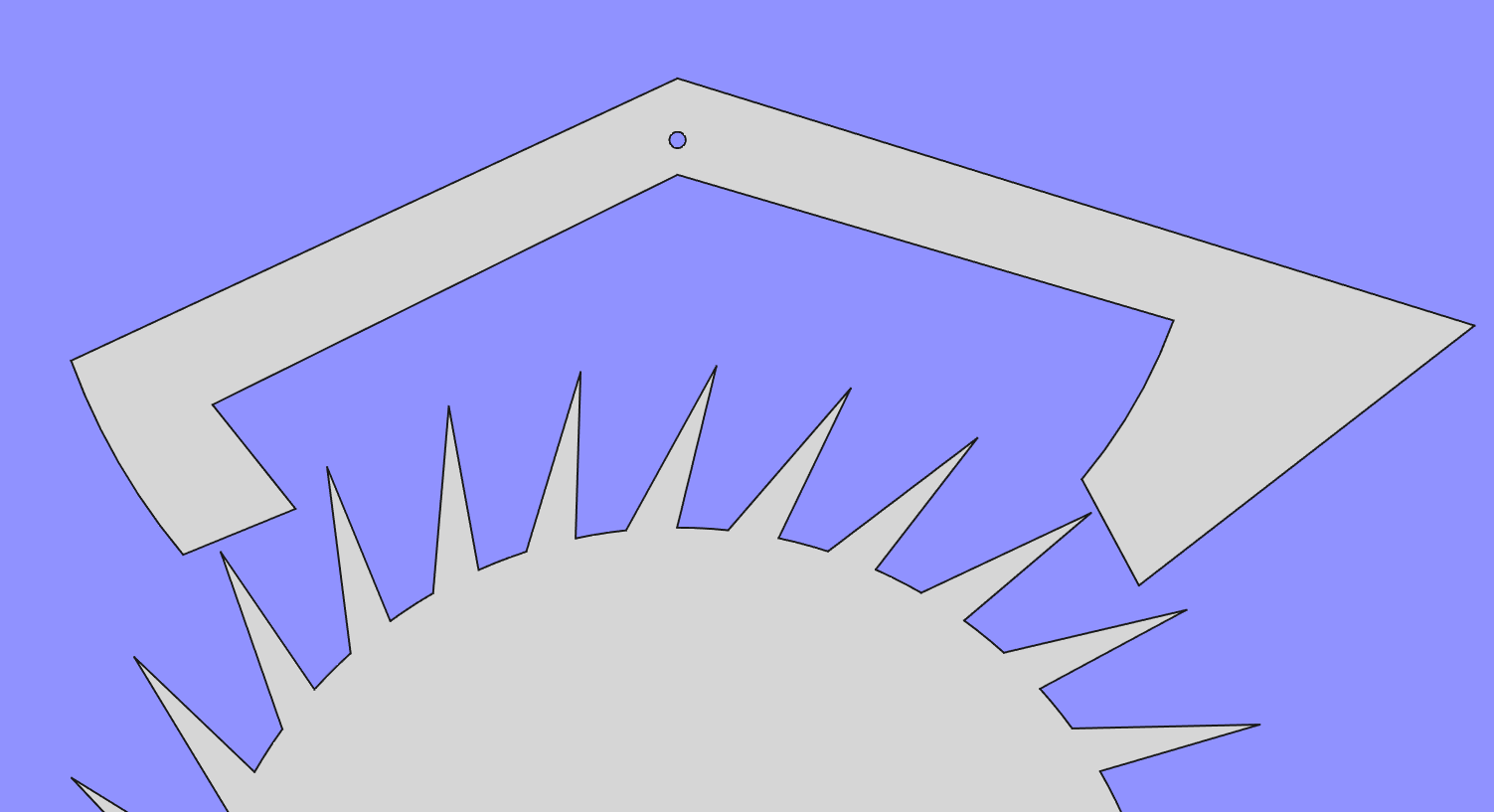 Firstly, the locking faces need to be broken up into a series of straight lines, because I can only specify polygons. Secondly, the exit pallet locking face will probably need to be multiple polygons because I can only specify convex polygons. And thirdly, I need to give the parts some thickness.