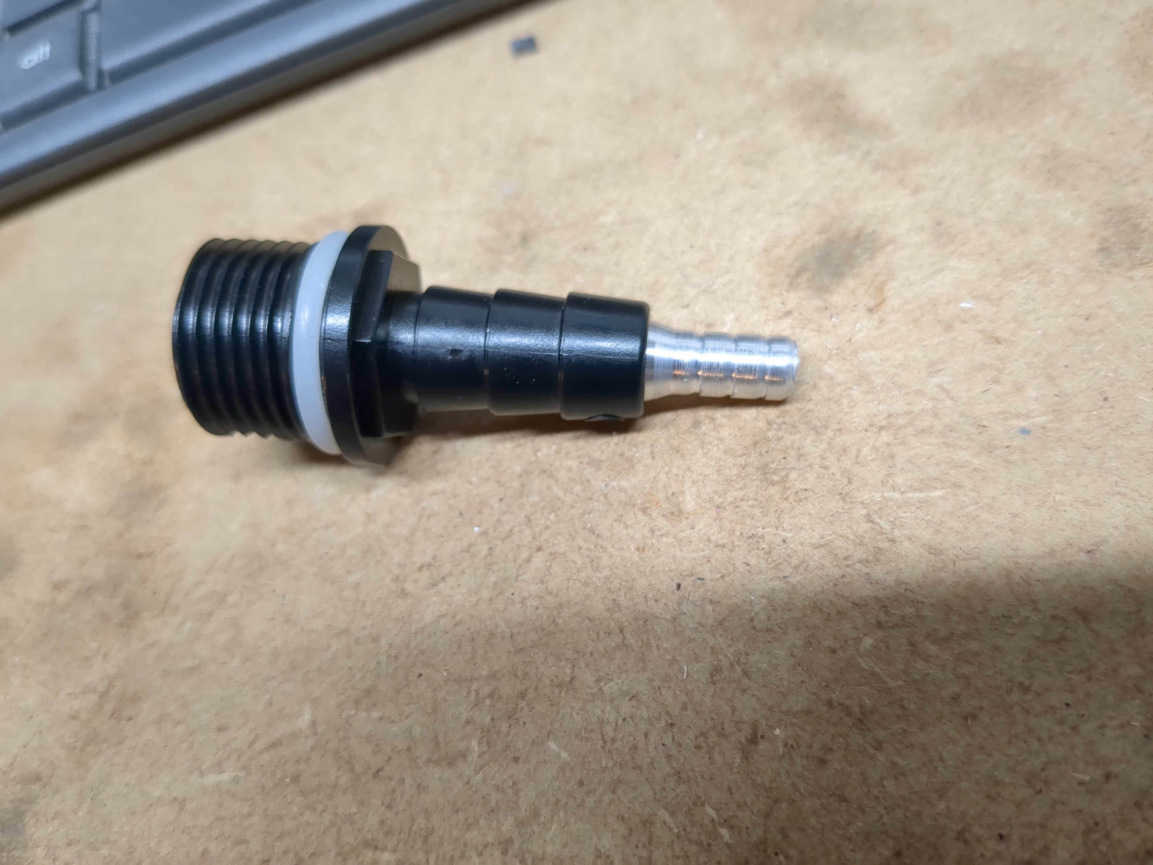I made an aluminium barb adapter to connect the hose to the pump, it is just an interference fit, seems good: