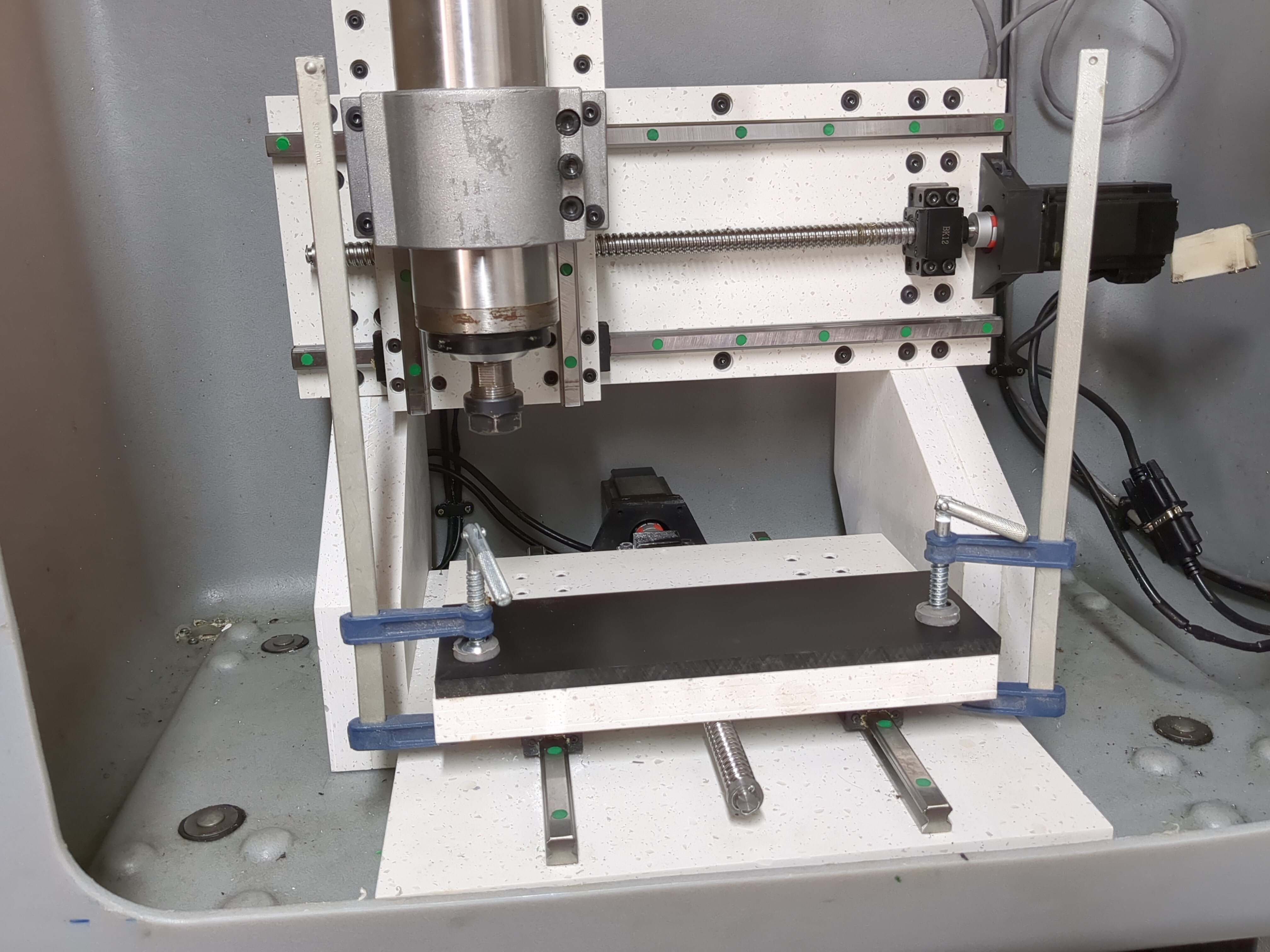 I feel like ignoring cable management inside the tub, and ignoring shimming the gantry, and making a start on some test cuts. Just need a method to fix something to the table.