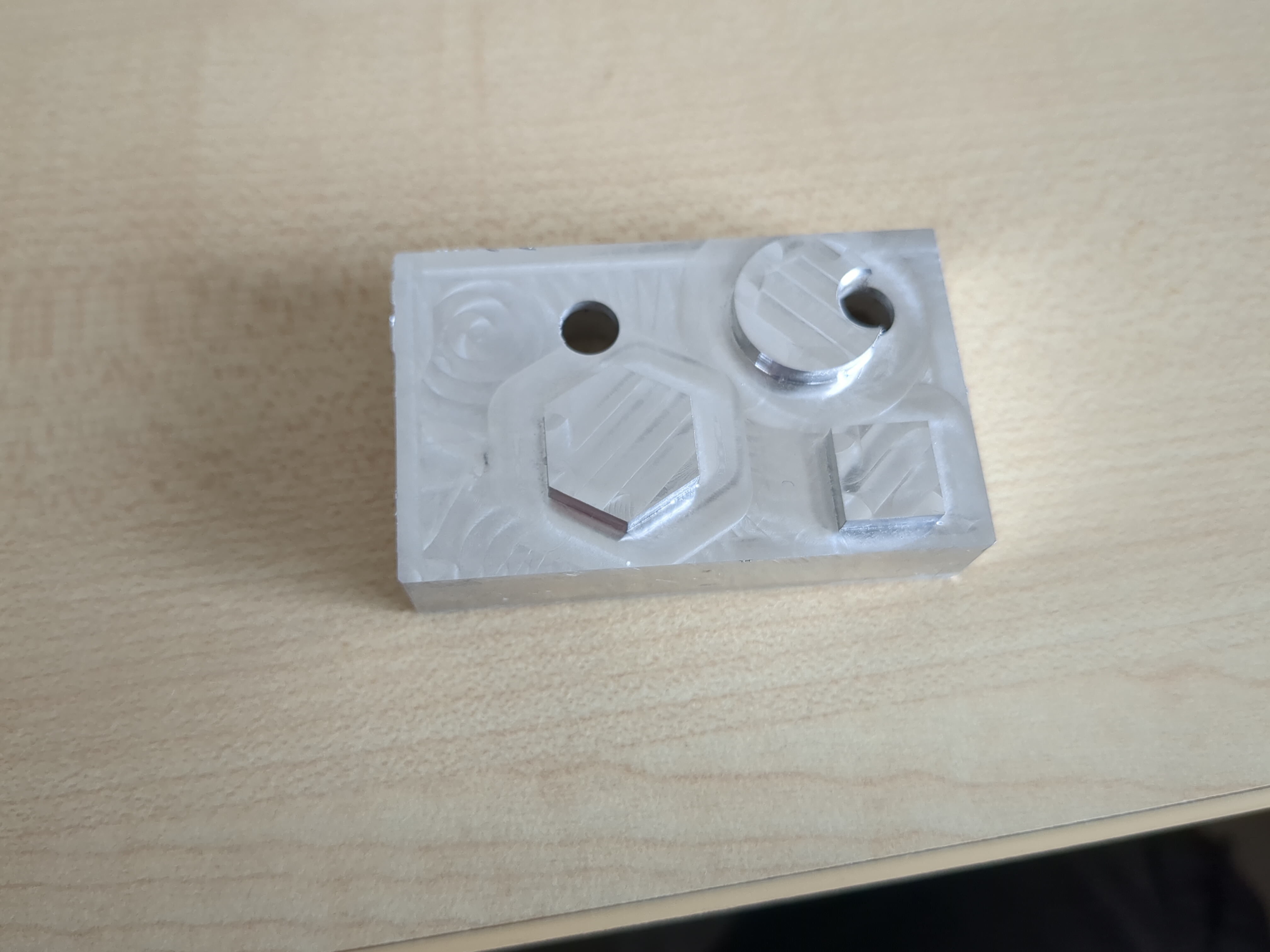 I'm going to do a test cut in the top and then measure it for accuracy, with a square, circle, and hexagon sticking up out of the top.