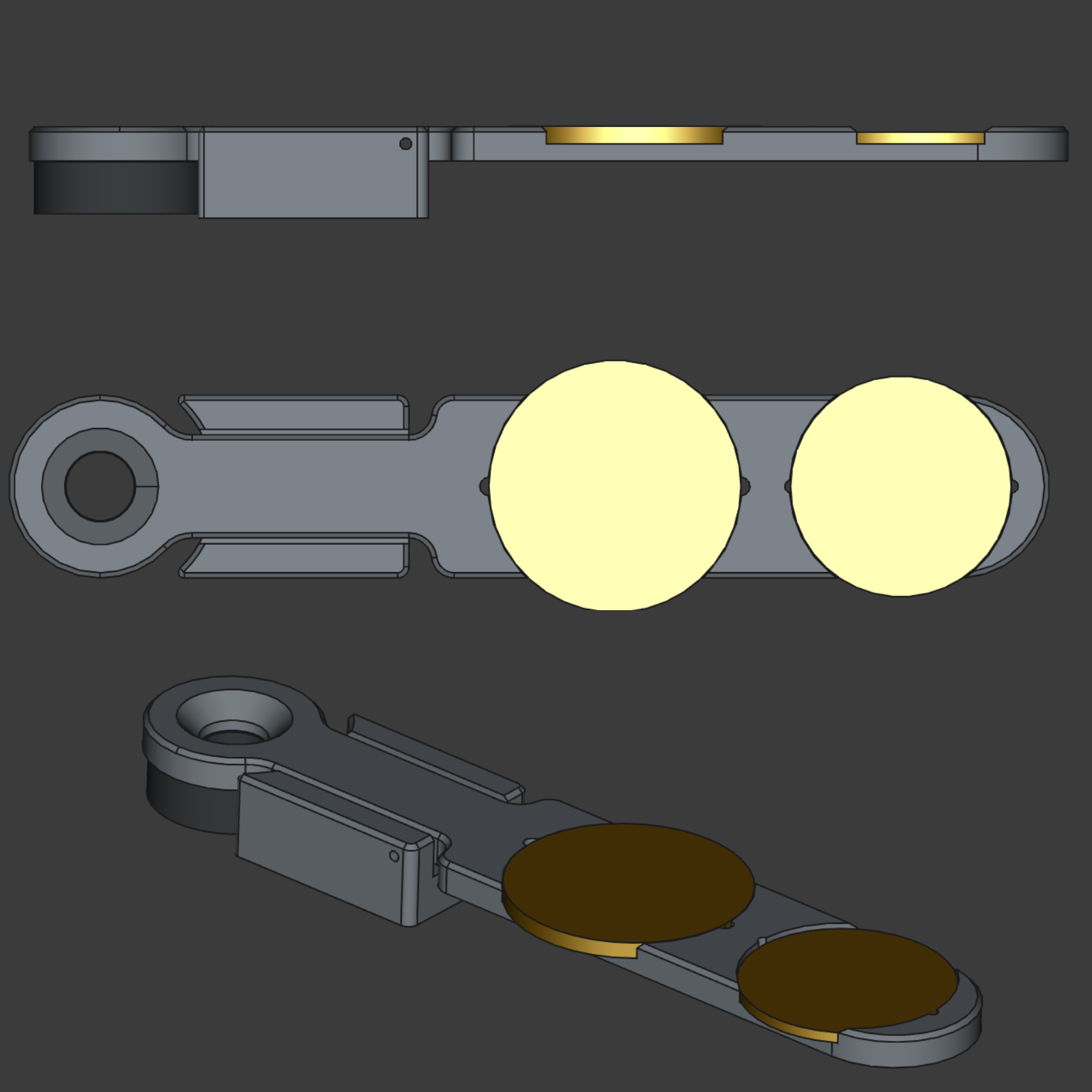 The CAD model I have at the moment is not ready to use because the half sovereign slot is not exactly 2x as far away from the pivot as the full sovereign, so it can't possibly be correctly calibrated for both.