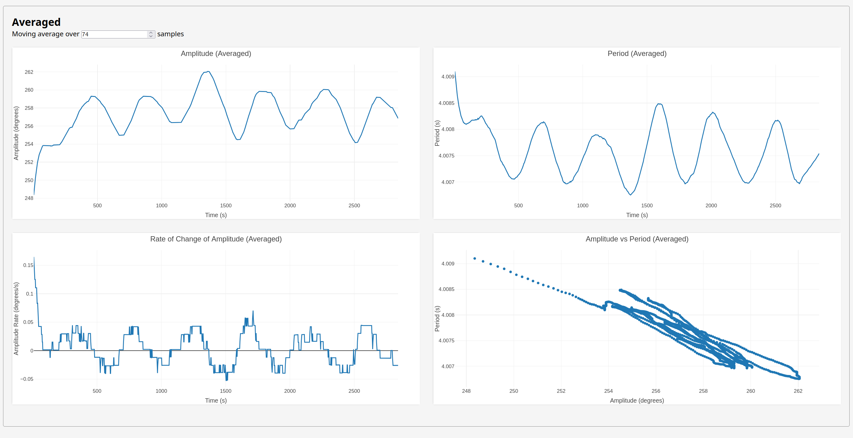 So we're still seeing the cyclical amplitude & period variation, but the amplitude is slightly higher than it was before because of (presumably) reduced friction in the plain bearings.