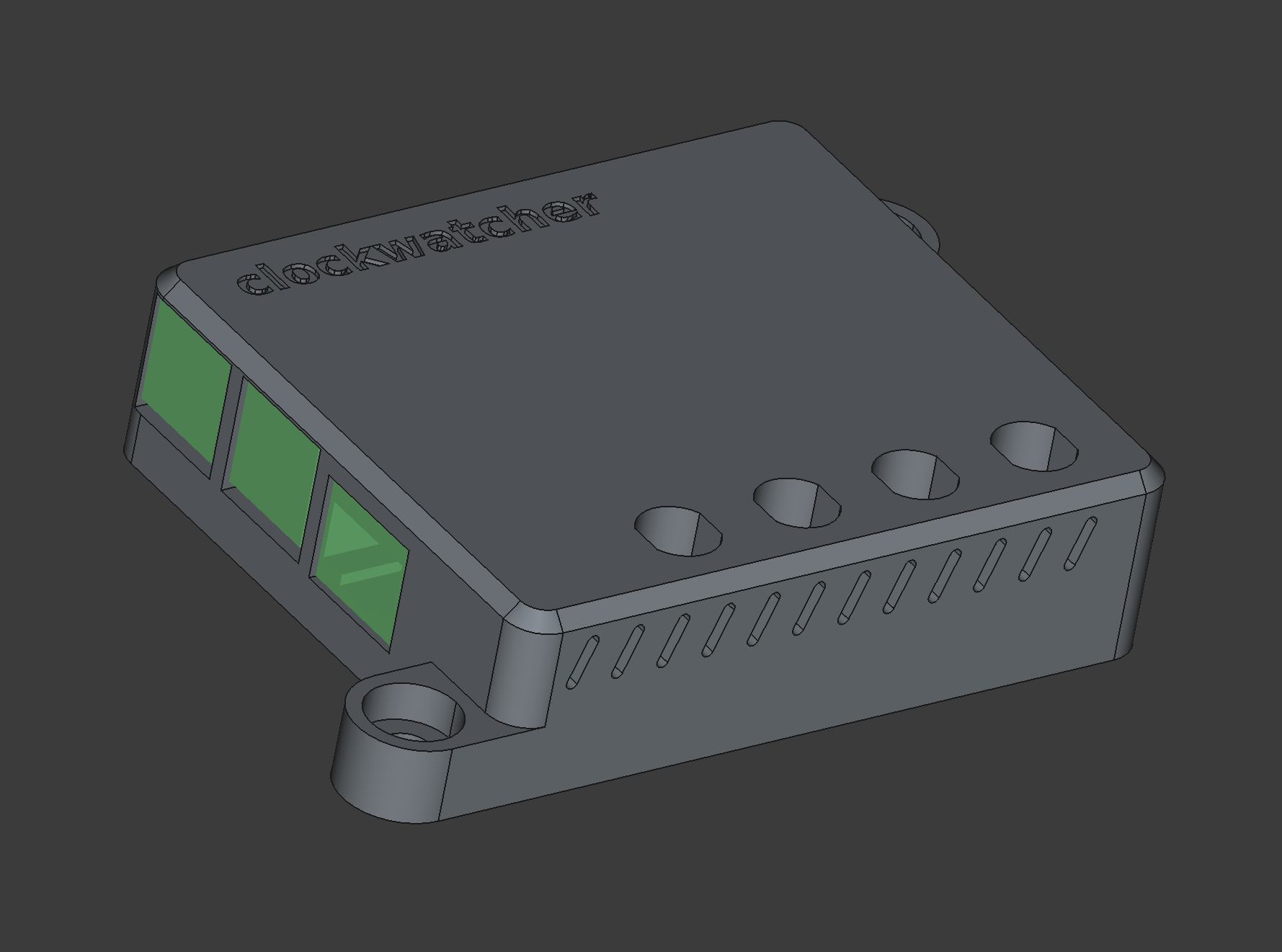 The Pi will be held inside with M3 screws. I was planning to put a bottom cover on, but come to think of it I don't think it's necessary, it can just be covered on the other side by whatever surface it is attached to.