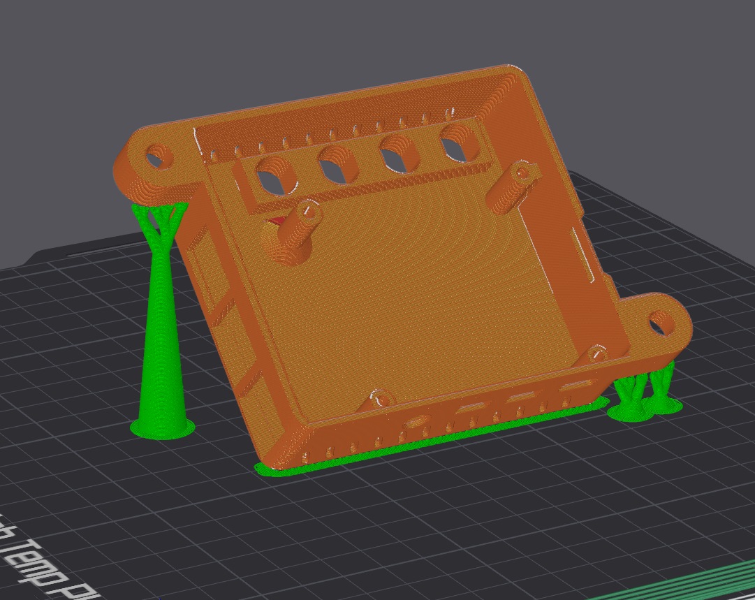 I'll give it a go, it might surprise me. My choice would have been to print it with the mounting holes flat against the bed and the inside filled with support material. I don't mind if the inside surface is messy because it is hidden.