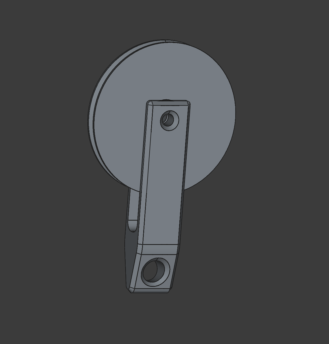 I think I just want a pulley to guide the string, with a hole in the middle to take a bearing (or even not - to test my theory about the friction not mattering), and a hook dangling underneath it to hang the weight on.