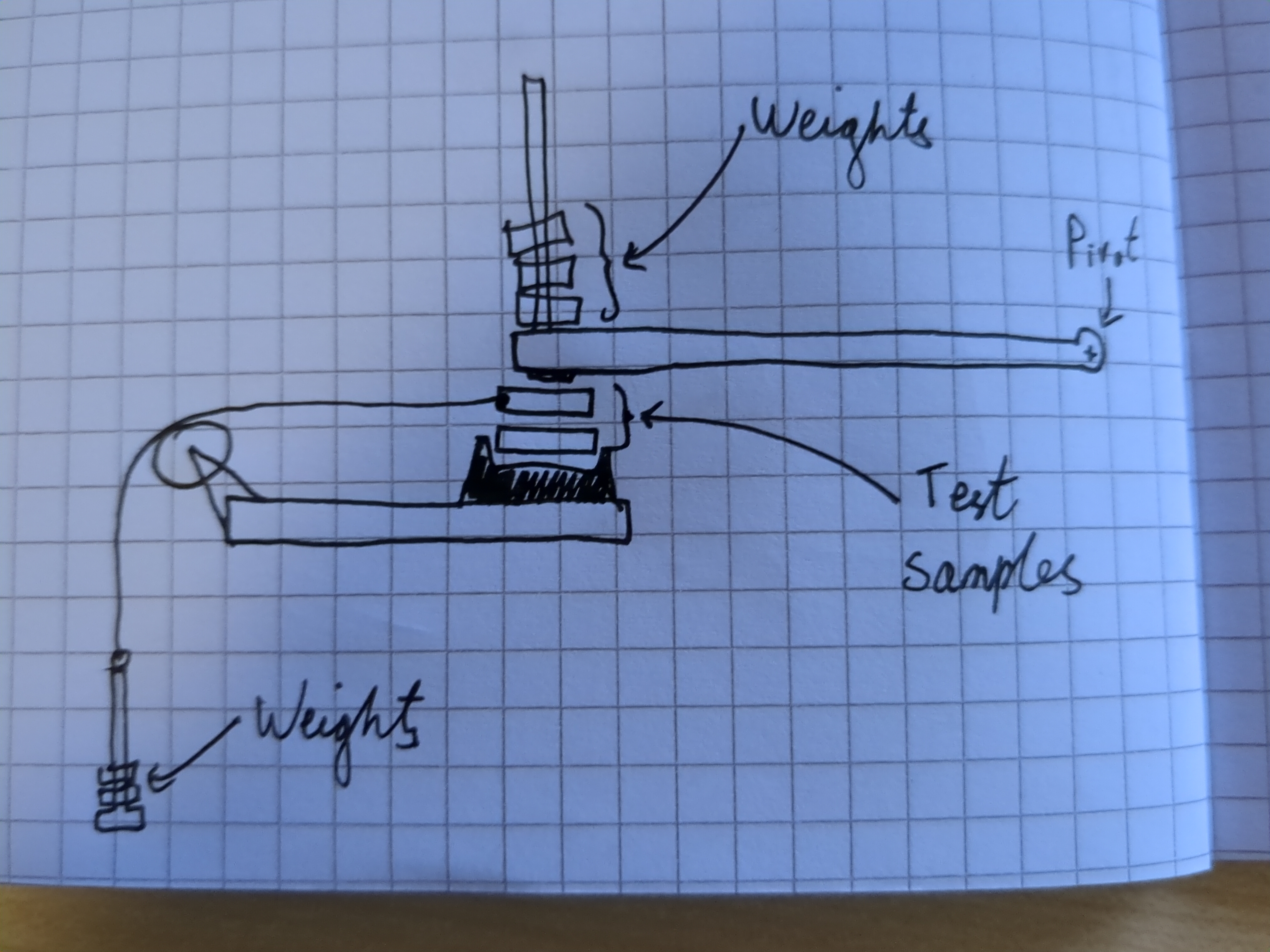 I think the pivot is actually harmful, the weights need to move with the test sample, otherwise you also have the friction between the test sample and the pivoting arm.
