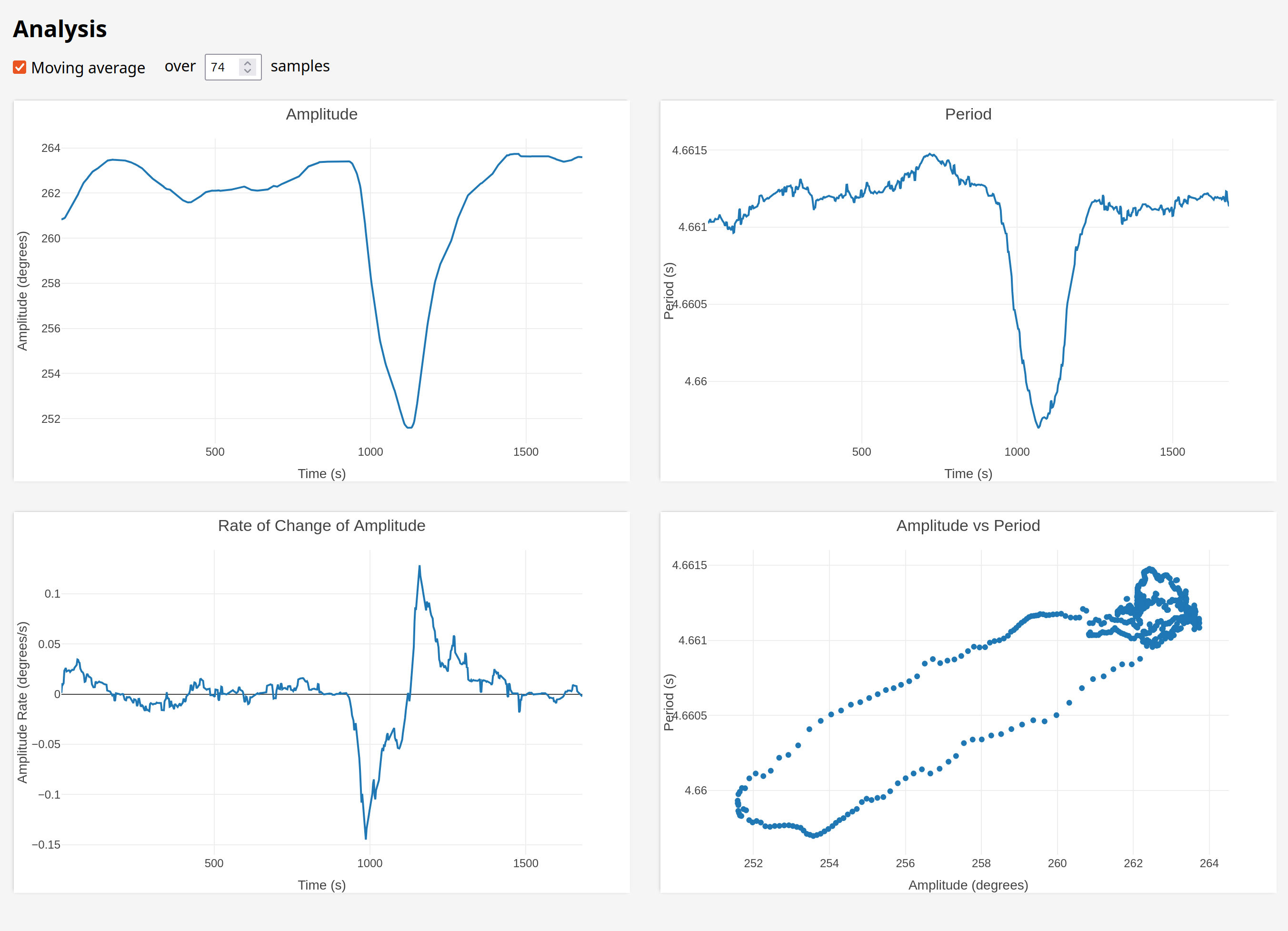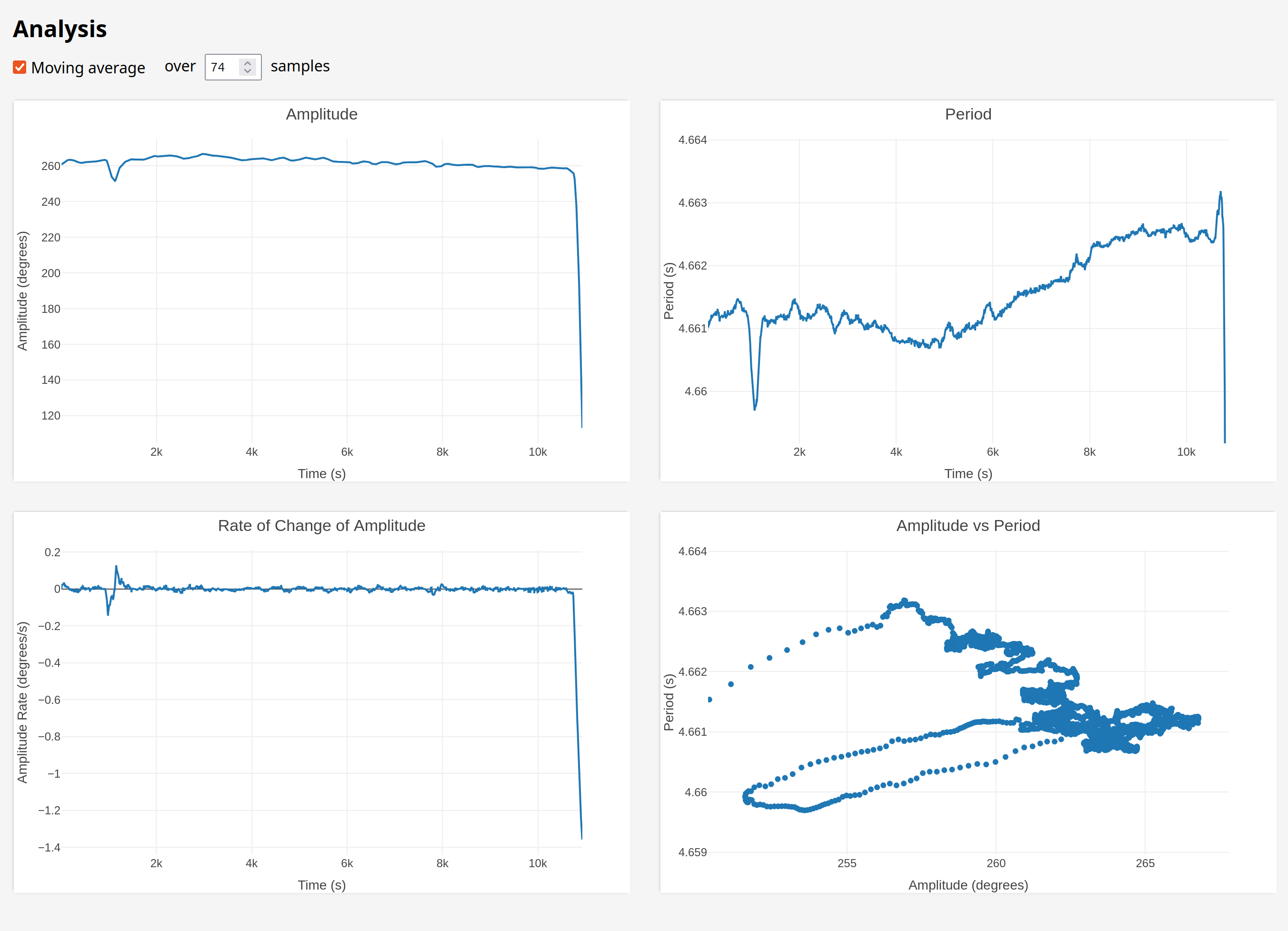 From about 5000 seconds onwards, there was a gradual decrease in amplitude and increase in period. Is this when the slotted disc started rubbing?