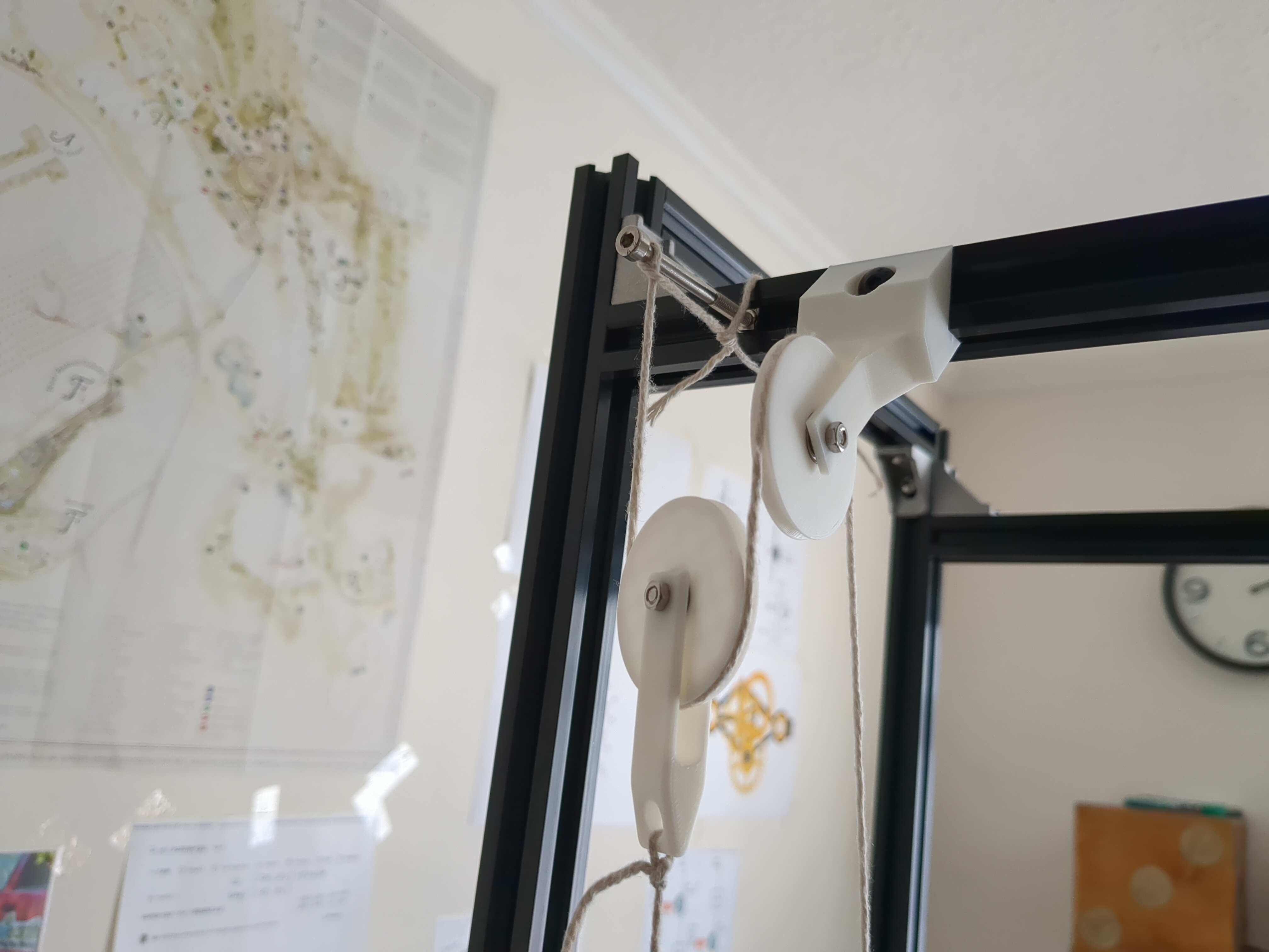 < 2025-01-04 2025-01-09 >I've added a bolt to space the fixed end of the string further away from the frame, so that the weight doesn't rest on the frame and stop the clock prematurely.