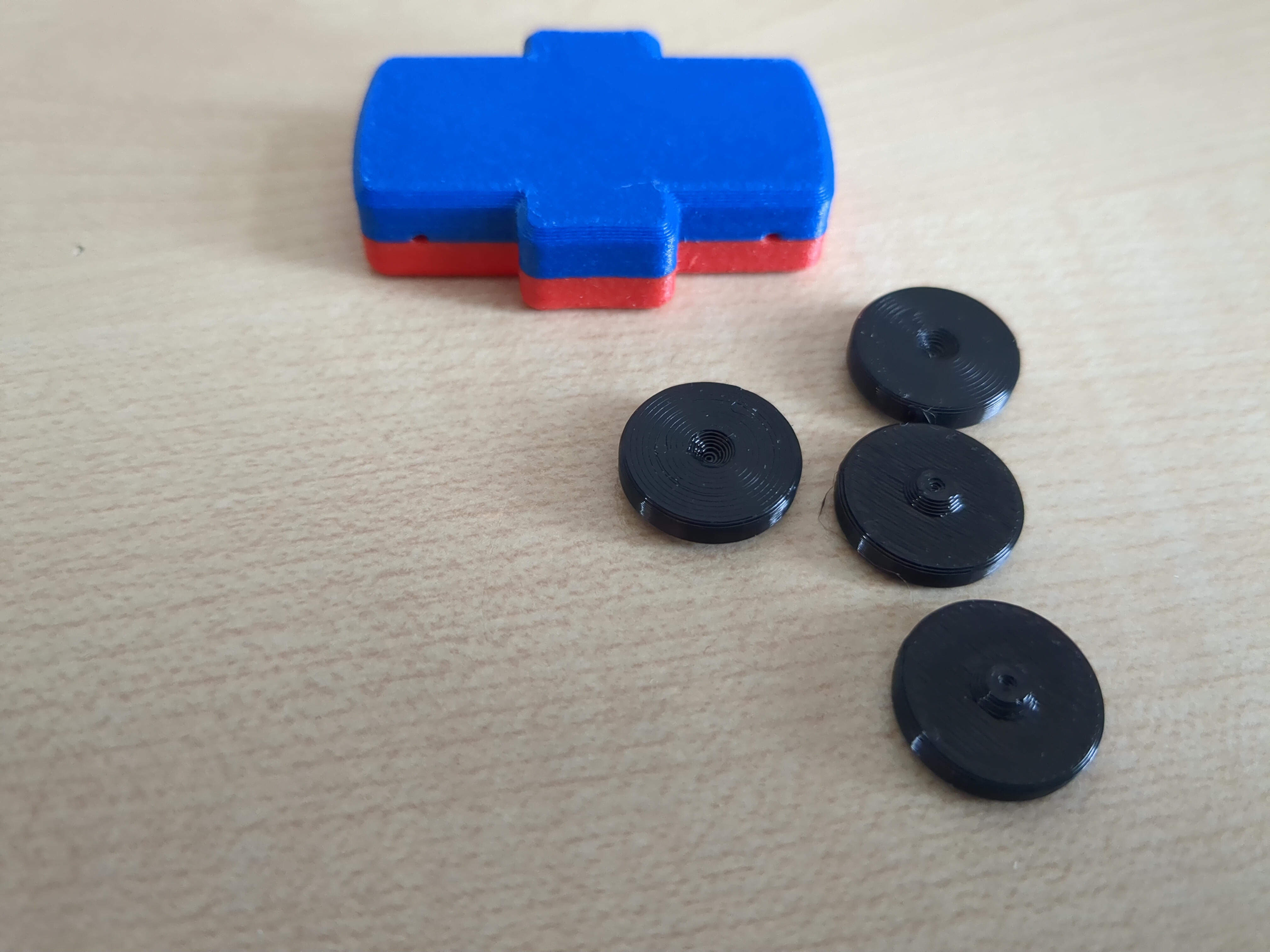 So the next thing was to go up to 1.5mm rods, make them loose in the body and press-fit in the wheels. That works, doesn't roll as easily but less wobbly and no sharp ends.