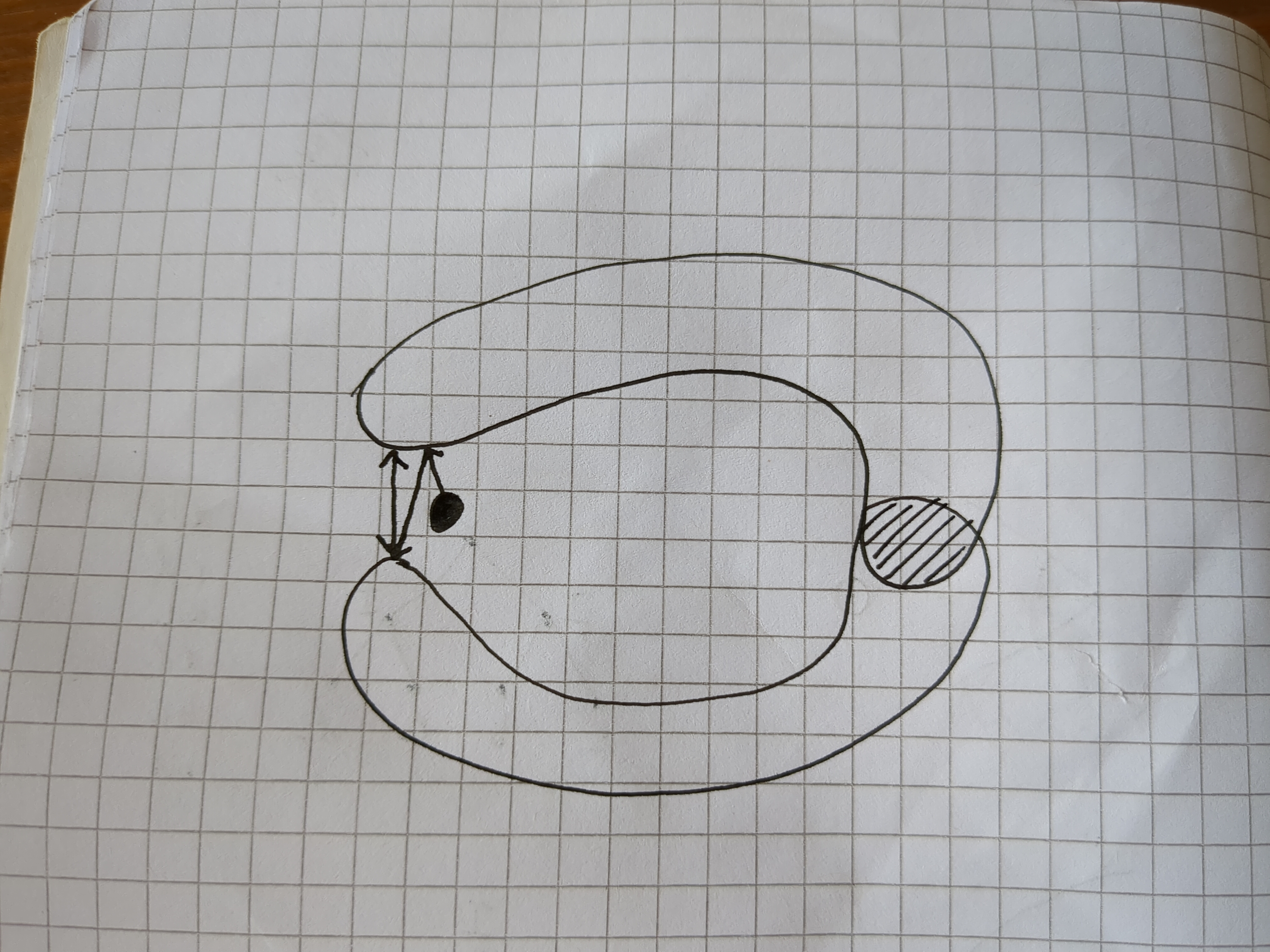 It has found a point that is inside both objects (good), but it is not the closest point to where it started from. If it then does a couple more steps of alternating which surface's gradient it follows, it will converge. Or have I confused myself by drawing a bad diagram? Does it actually work? Unsure.