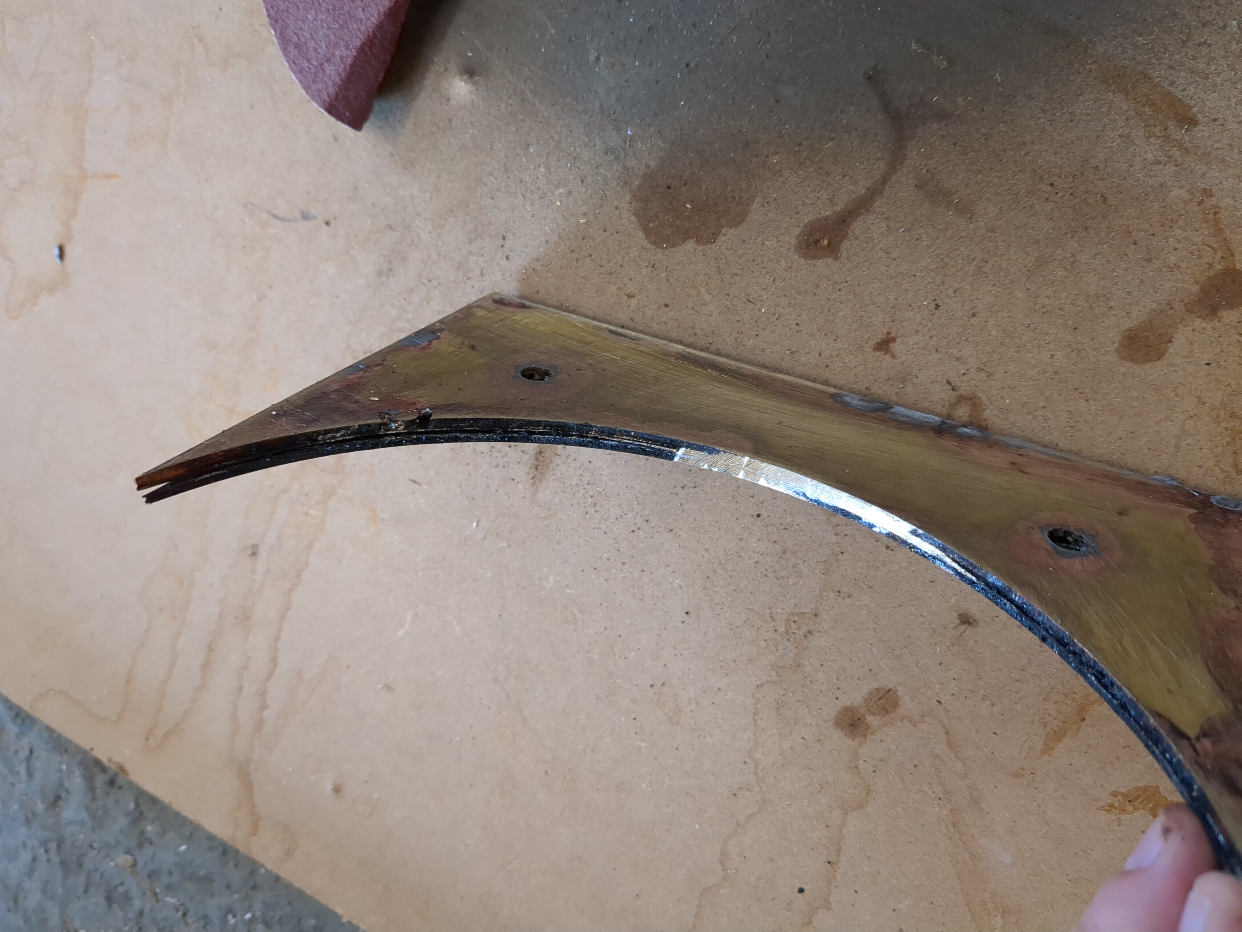 It isn't very well joined at the "tips" but the middle was clamped in the vice while the solder was still wet and looks to have come together pretty well. So hopefully I can get a 6mm thick gnomon out of this.