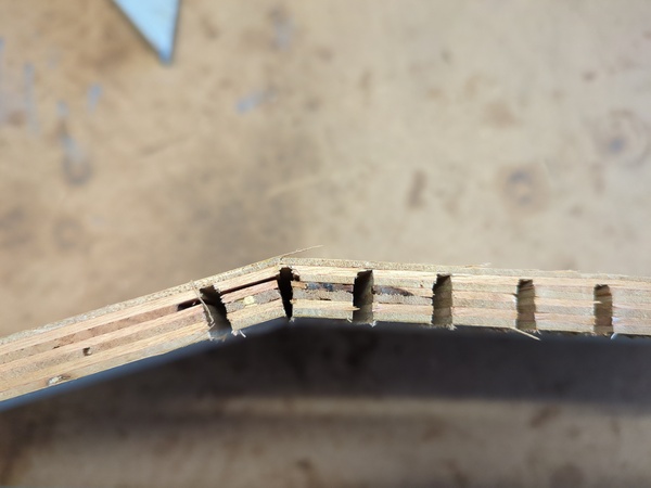 I used the calculator and left a 3mm thickness (as per the default) and I could tell it wouldn't bend without snapping. So then I cut all the grooves deeper but it still felt like it was going to snap, but I forced it, and then it snapped. Bugger.