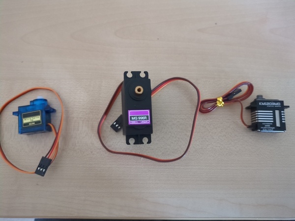 Contenders are: SG90 micro servo, MG 996R normal-size (?) servo, and KM1203MD micro servo. I recall the latter was quite expensive, I was planning to use it for an antweight combat robot.