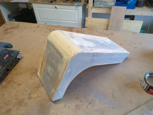 Shaping the curve is quite tricky. It's OK at the sides because you have the side pieces for reference, but in the middle is hard. I'm going to 3d print a matching curve so that I can use it as a reference for sanding, and next time can use it to spread bodyfiller.
