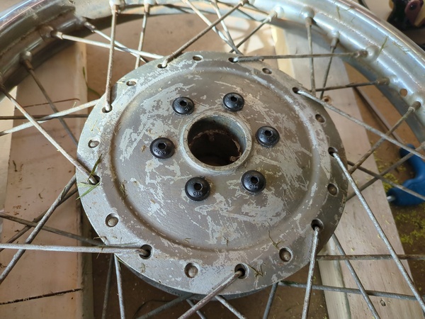 I will also spot-face the hub on the inside, and then I can seat a big steel spacer against it on the inside. Make the spacers long enough that the disc carrier is seating on the spacers instead of the spigot. And then it can all be bolted up tight without bending the wheel hub material, and then the bending load will be taken by the spacer instead of the bolt. It just requires all the spacers to end up the same height, when accounting for the depth of the spot-face, but I think that will be OK. I can fit them by hand by incrementally facing them down on the lathe, and maybe marking which one goes where.