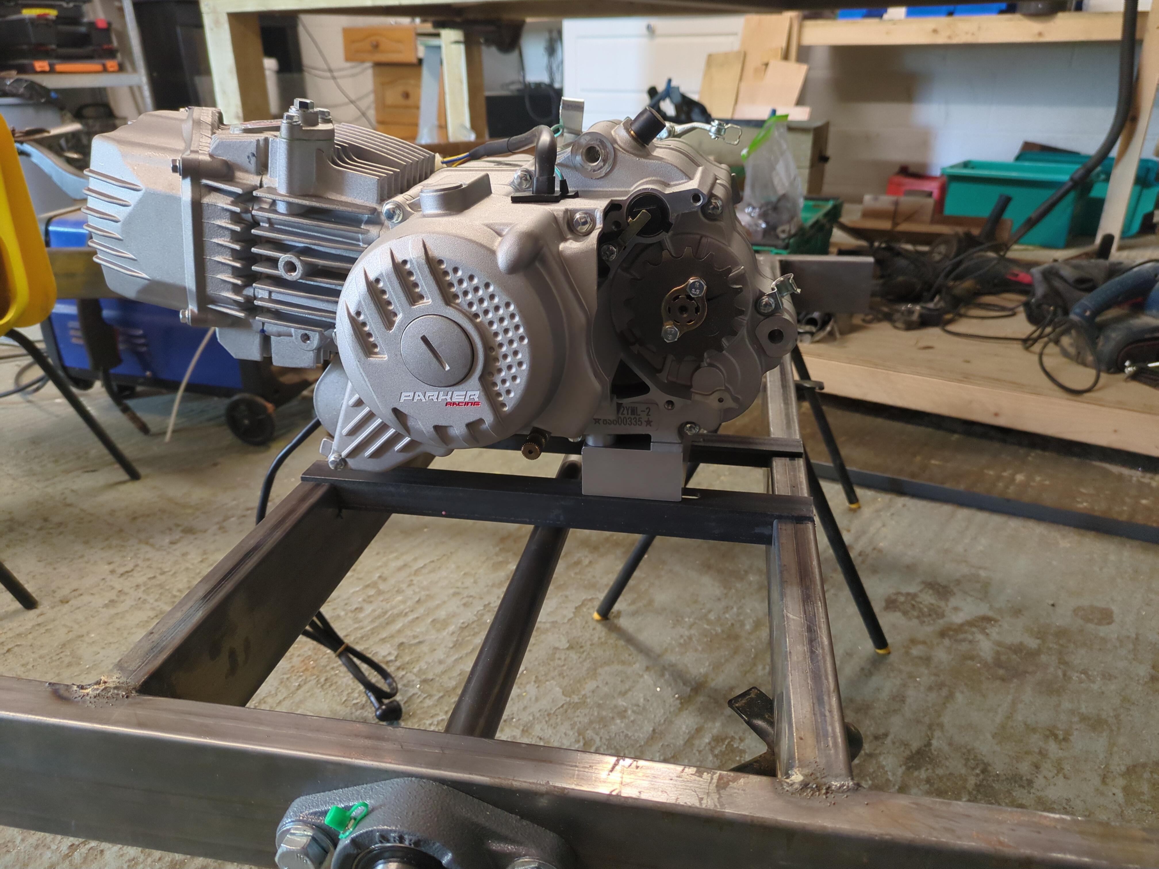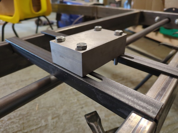 < 2026-02-23The plan is to work out roughly where I want the bolt holes to be, and then machine slots in them, drill holes in the spacer block for M8 clearance, bolt everything up, then tack the mounts in place with the engine bolted in, to make sure it fits, and then weld in place.