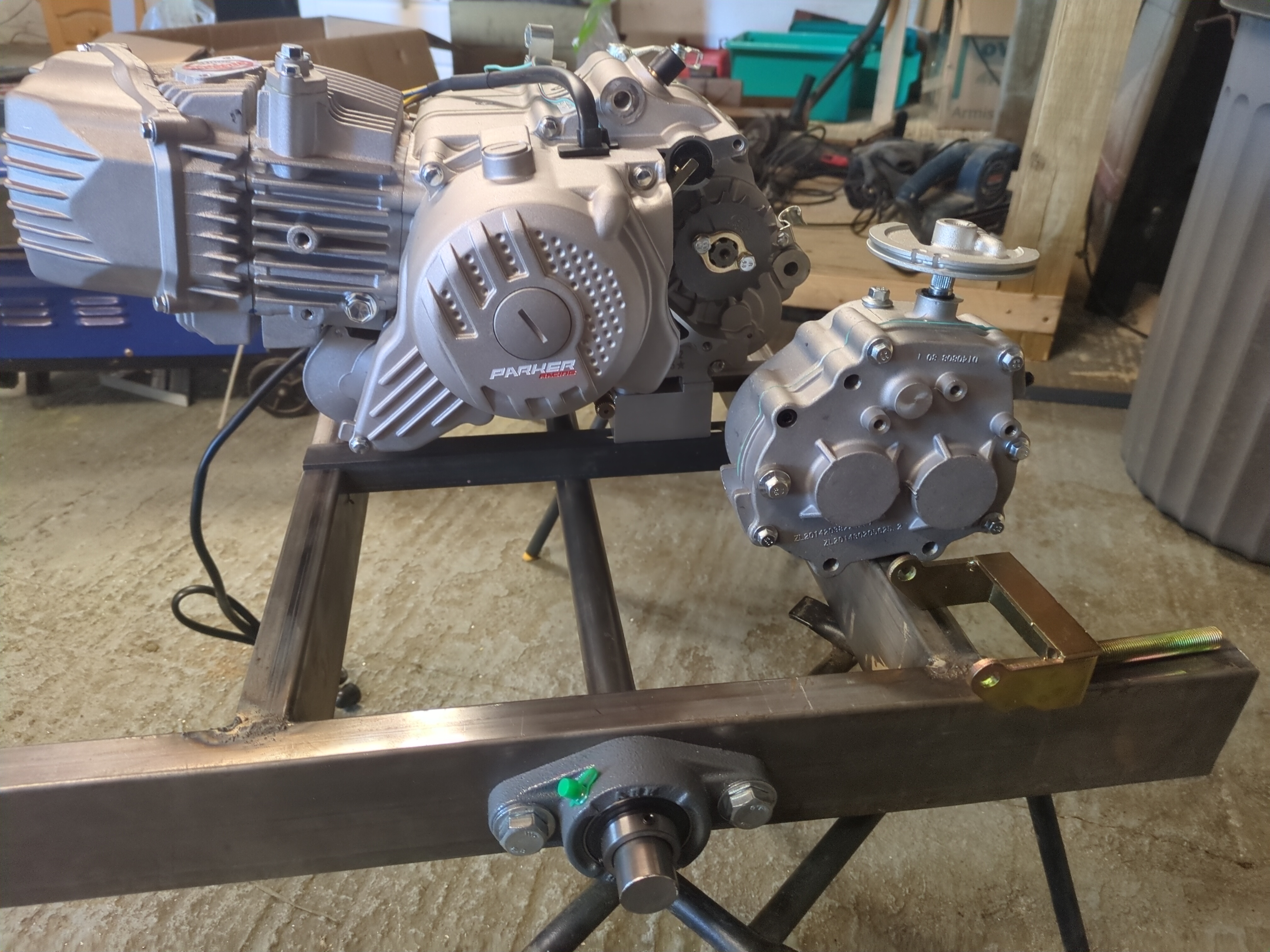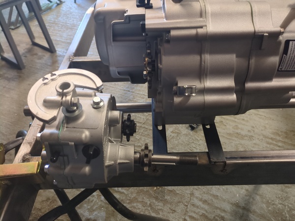 And then I'll use the clevis-looking part to tension the chain between the gearbox and the axle, and then slide the engine to tension the chain from the engine to the gearbox. Annoyingly, sliding the engine means the exhaust will need to be able to move on its mounts, but you can get flexible exhaust pipe so maybe that would be good to use.
