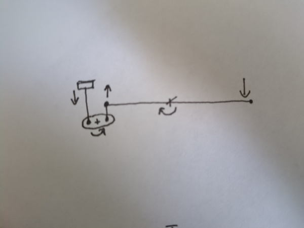 Also I guess I am kind of expecting the damper part to pivot about the top of the long thin part, but actually it is not like that. The long thin part bends uniformly along its length, which means the damper part moves quite far to the left in the course of moving downwards.