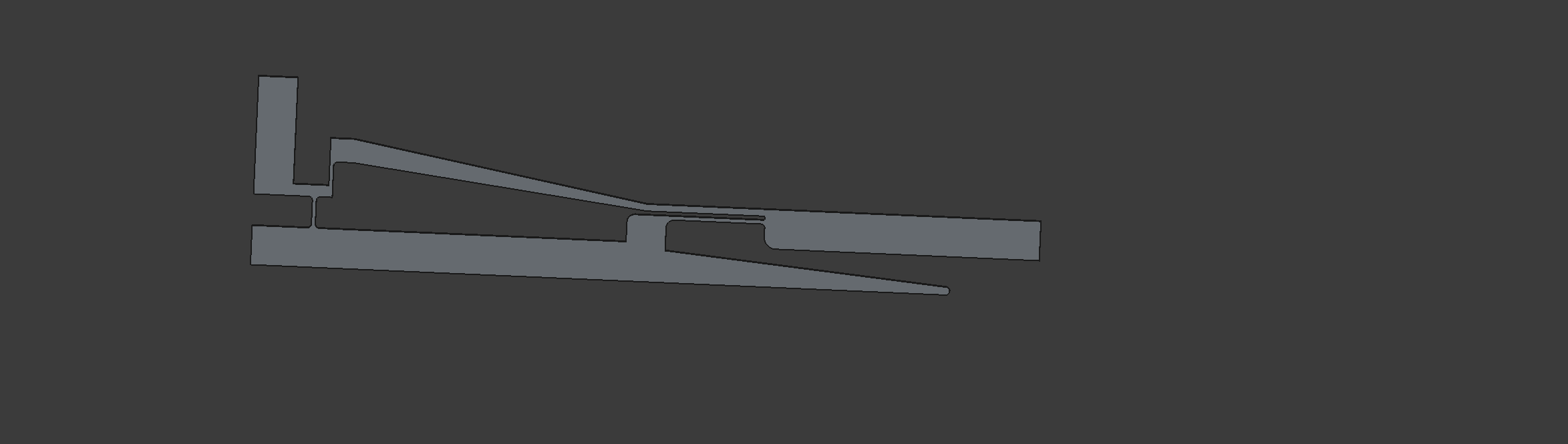 Ugh. Another total fail. The flexures are much too short, the long fat part bends more easily than the flexures do.