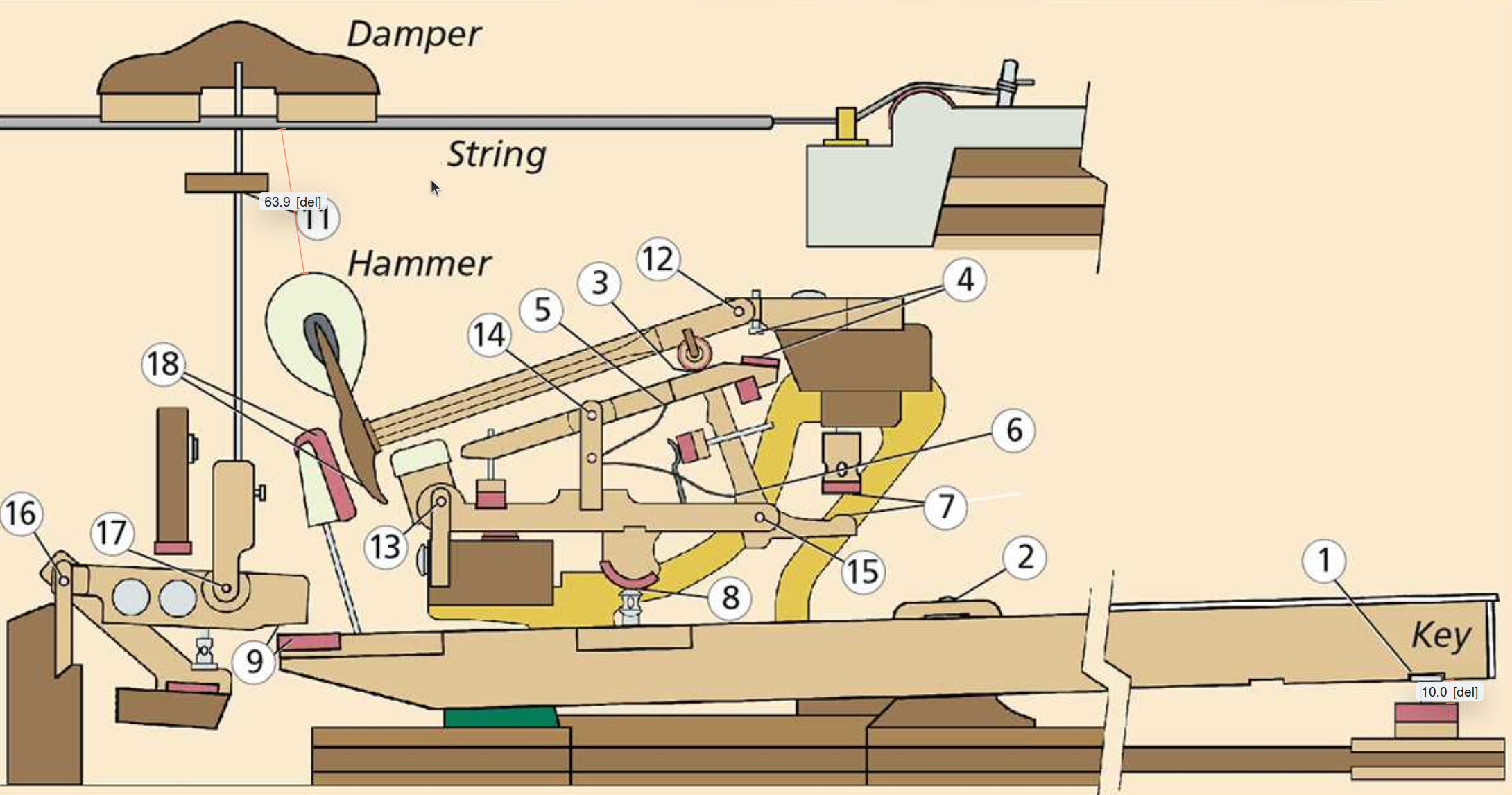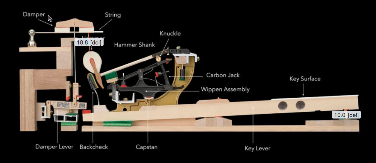I found an alternative diagram where it is 2.5x. So is it more that it's highly non-linear? Rather than being an overall high ratio. If the first part of the key travel gives very little hammer movement, and then the last part gives a lot, you effectively have a higher lever ratio to accelerate the hammer at the end?