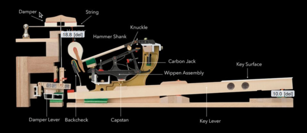 In CAD it is showing that the key reaches full 10mm dip at 50g of force, and this moves the hammer about 30mm. Will see how it works in real life.