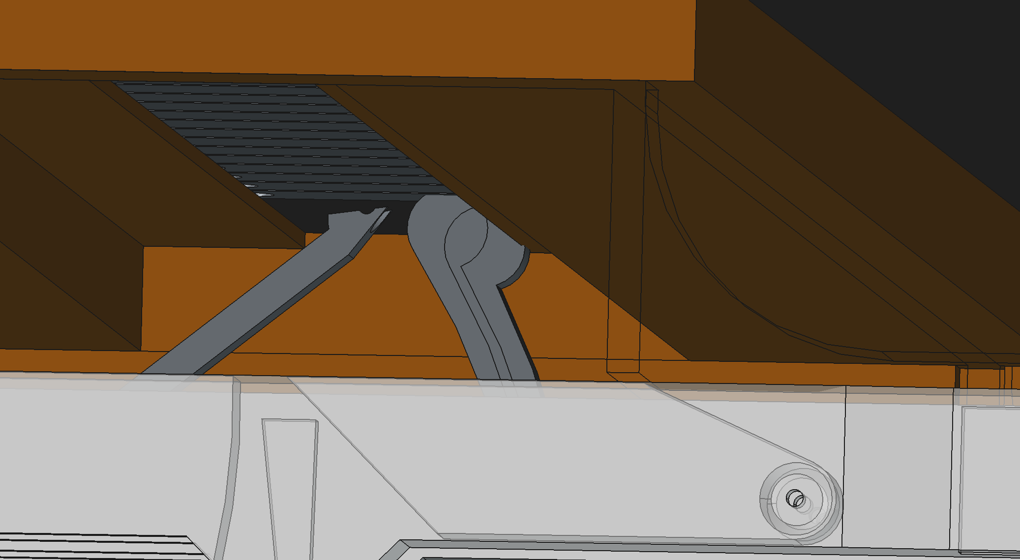 To allow clearance for the hammers and dampers, the panel on top that supports the tone bars needs to be relieved quite a lot, and that means there's not really enough material to provide tone bar supports.