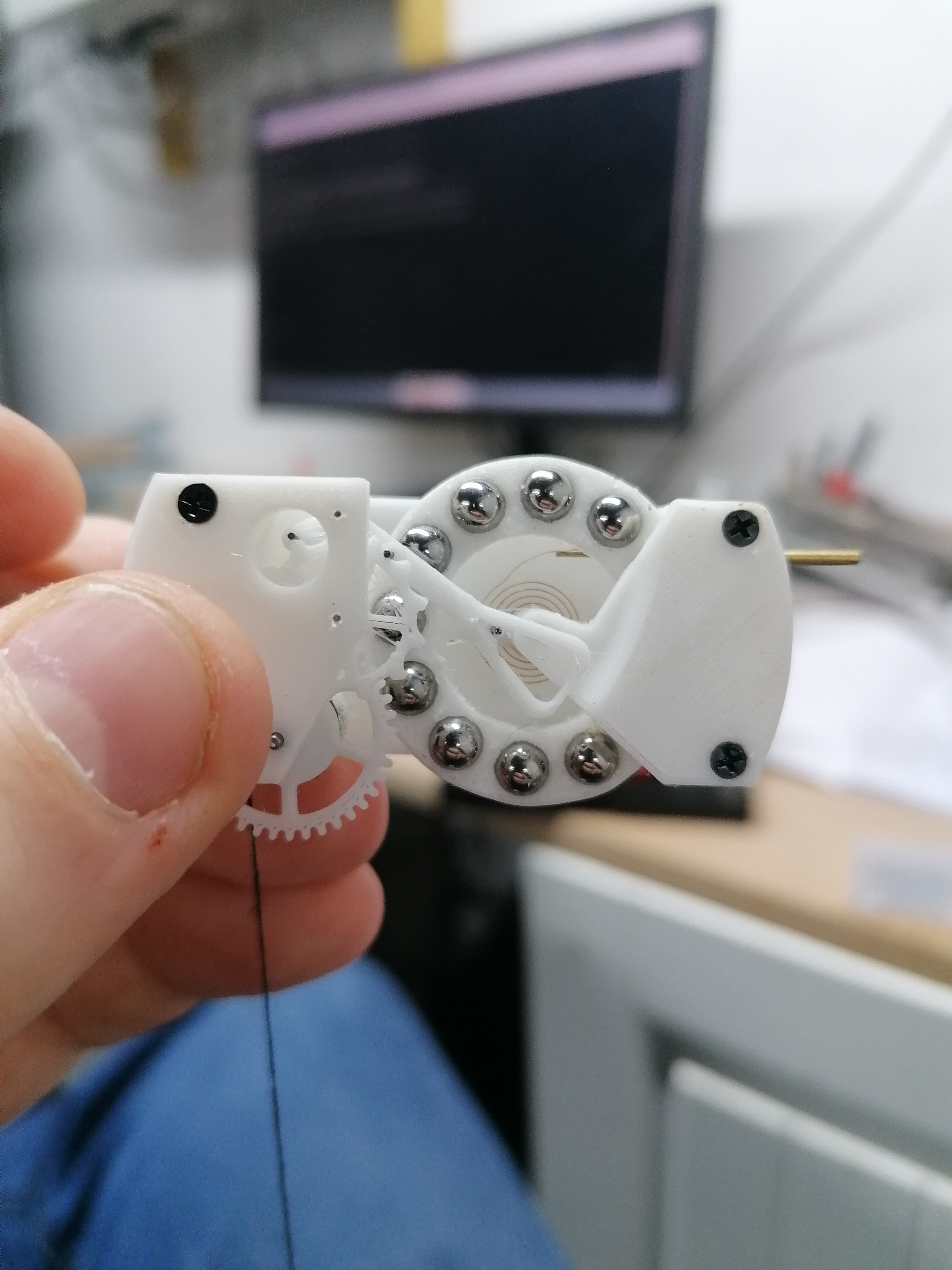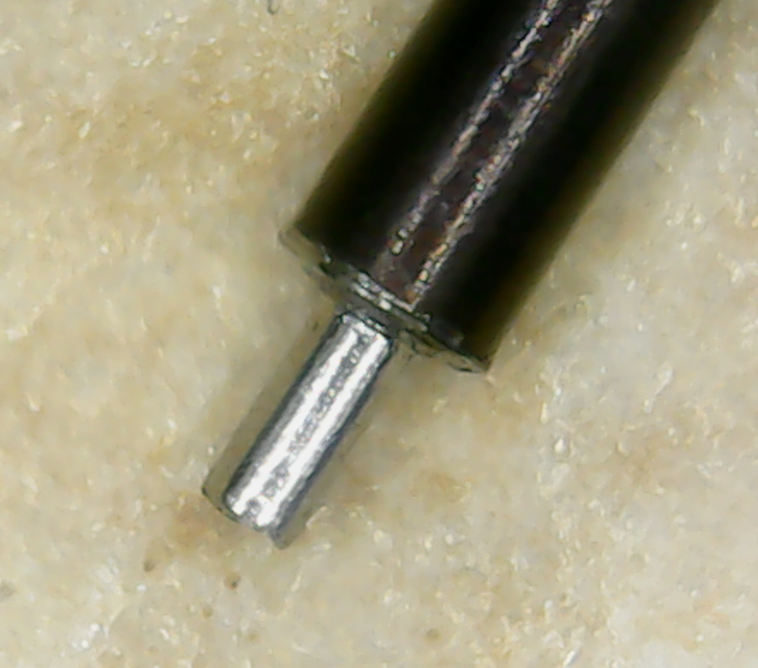 One of the shaft pivots was slightly over-sized so it wouldn't fit in the hole. I enlarged the hole using a 1.1mm drill in the pin vice.
