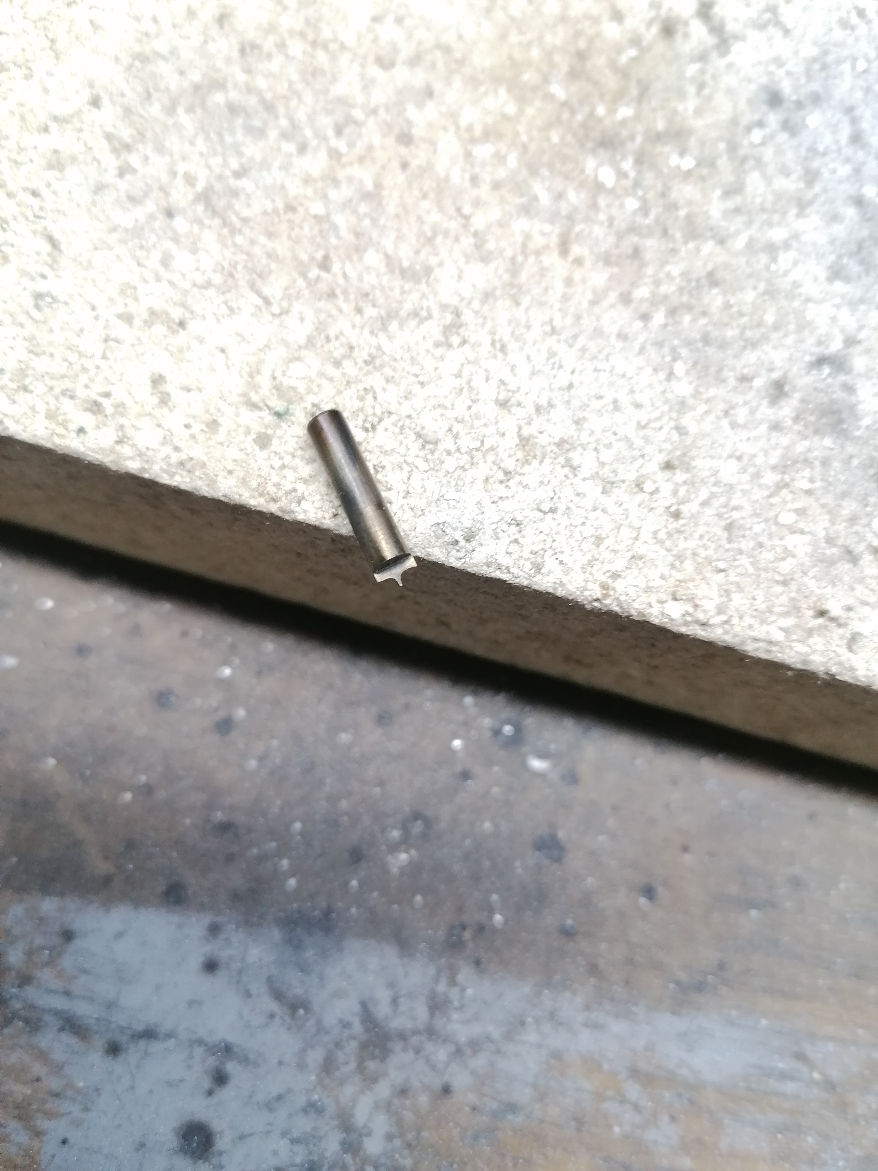 Now tilt the rod so that it points up slightly, and use the 1mm end mill to machine a negative of a tooth profile on to the rod.