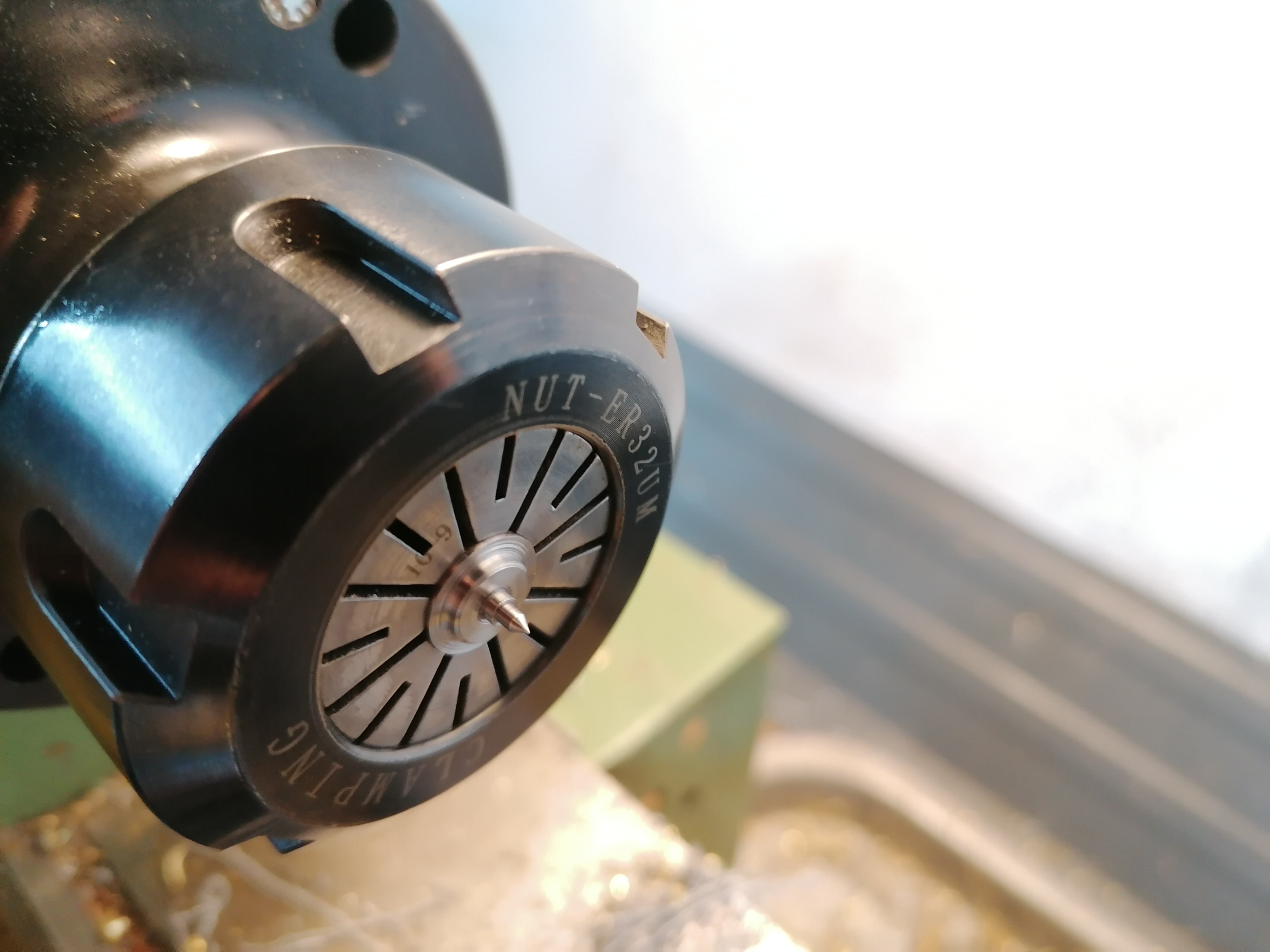 Put blued steel rod in the collet chuck.