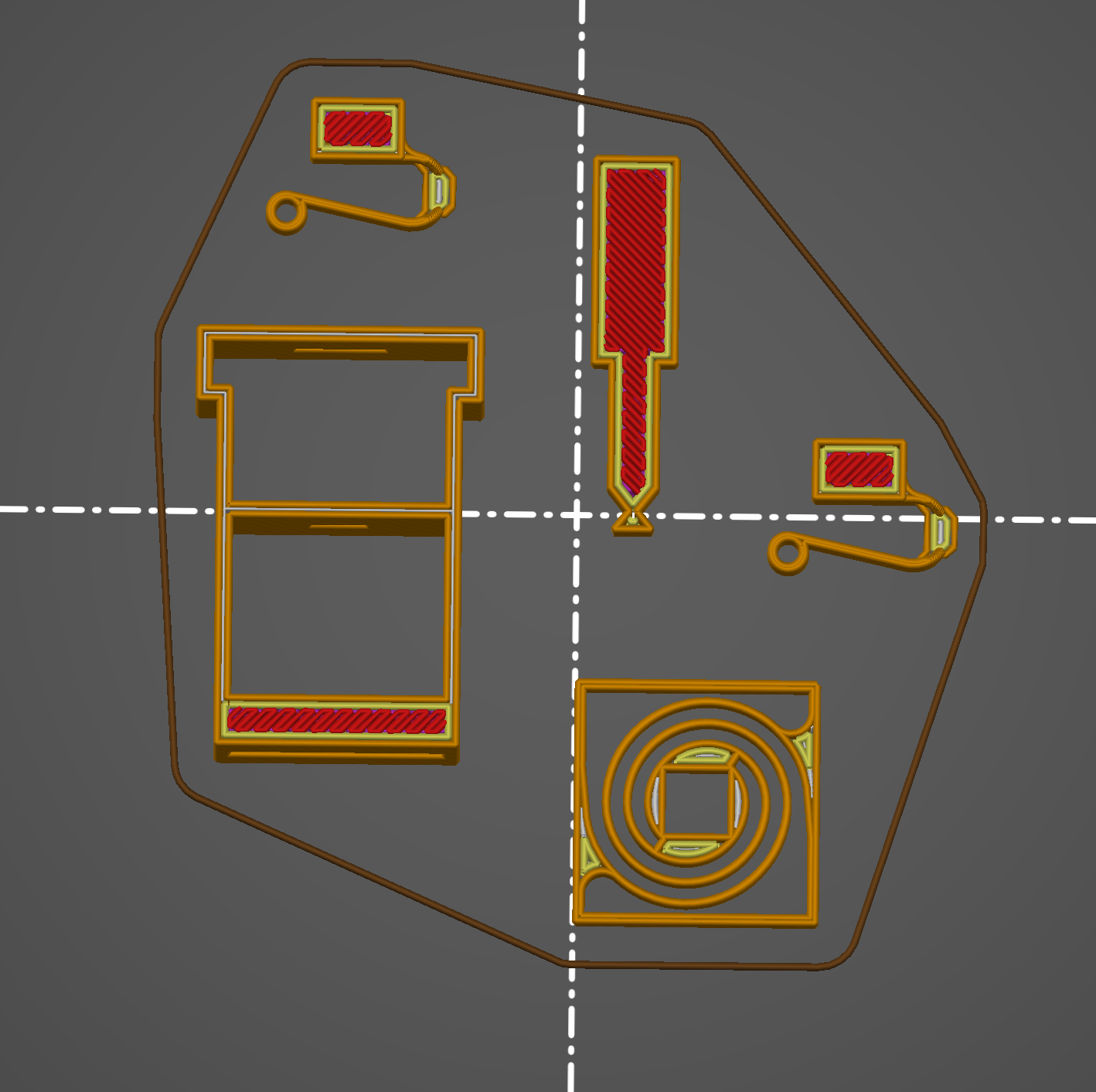 Download the STL files and arrange them on the build plate something like this (you'll probably have to rotate the spiral spring):