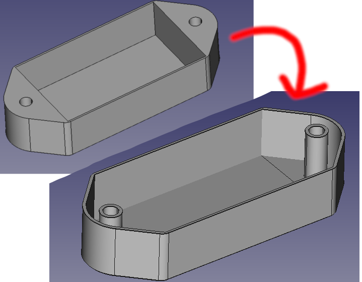 In addition to reorienting things so as to use the space inside the case more efficiently, I thought it would be a good idea to make the space around the holes hollow:
