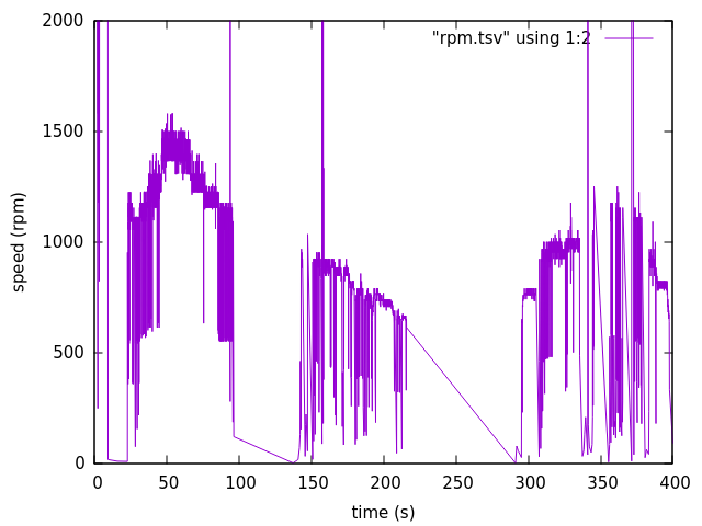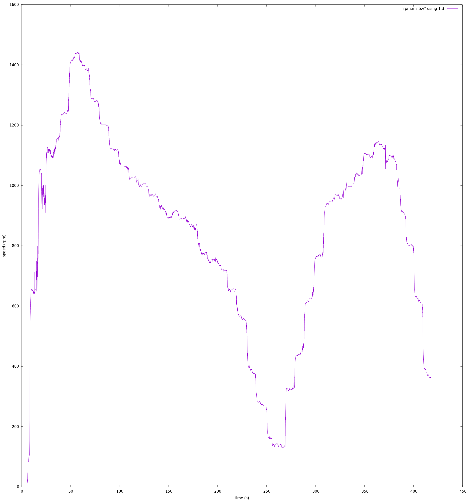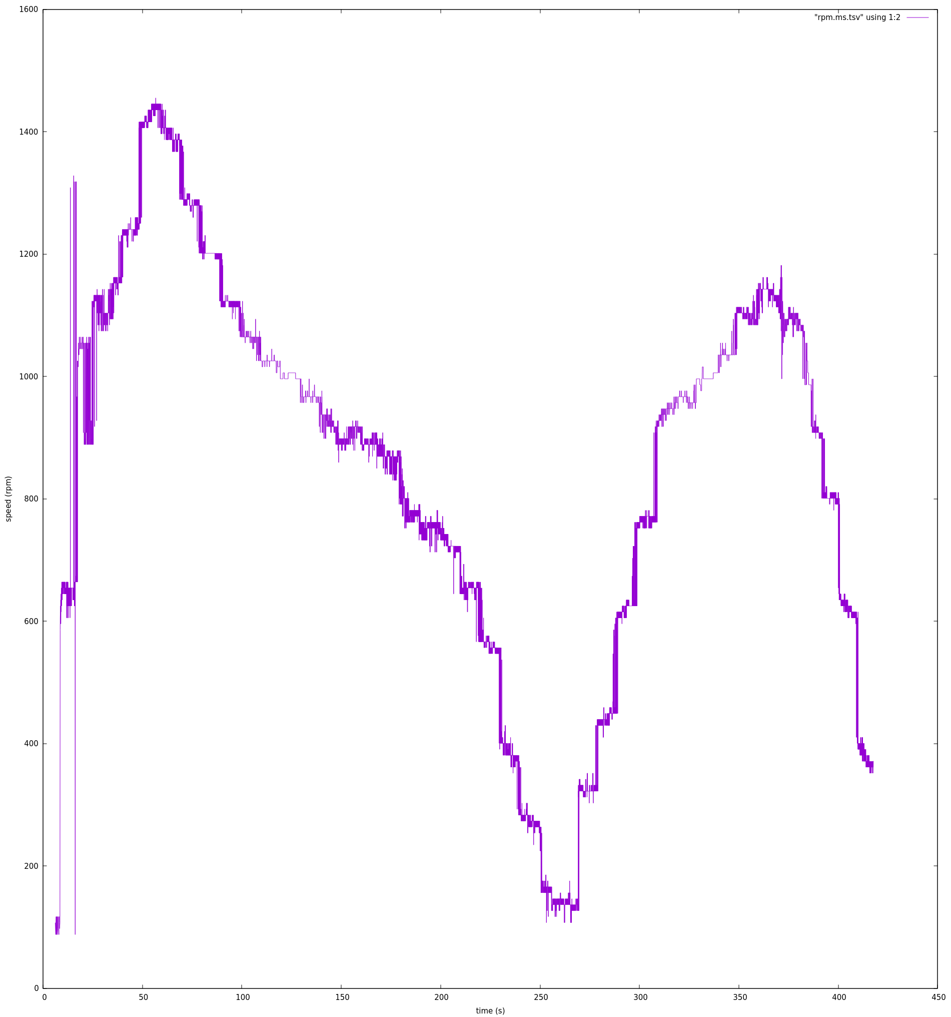 And finally, taking an exponential moving average of this data, we get the RPM plot that I'm treating as the "truth".