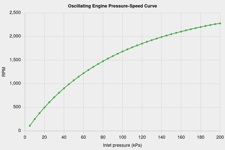 Now that the loss model in the simulator might be reasonably close to reality, I wanted to simulate some engine modifications to see if we can find improvements on the standard Wig-Wag configuration. All of these cases are with 200 kPa supply pressure (= ~30 psi).
