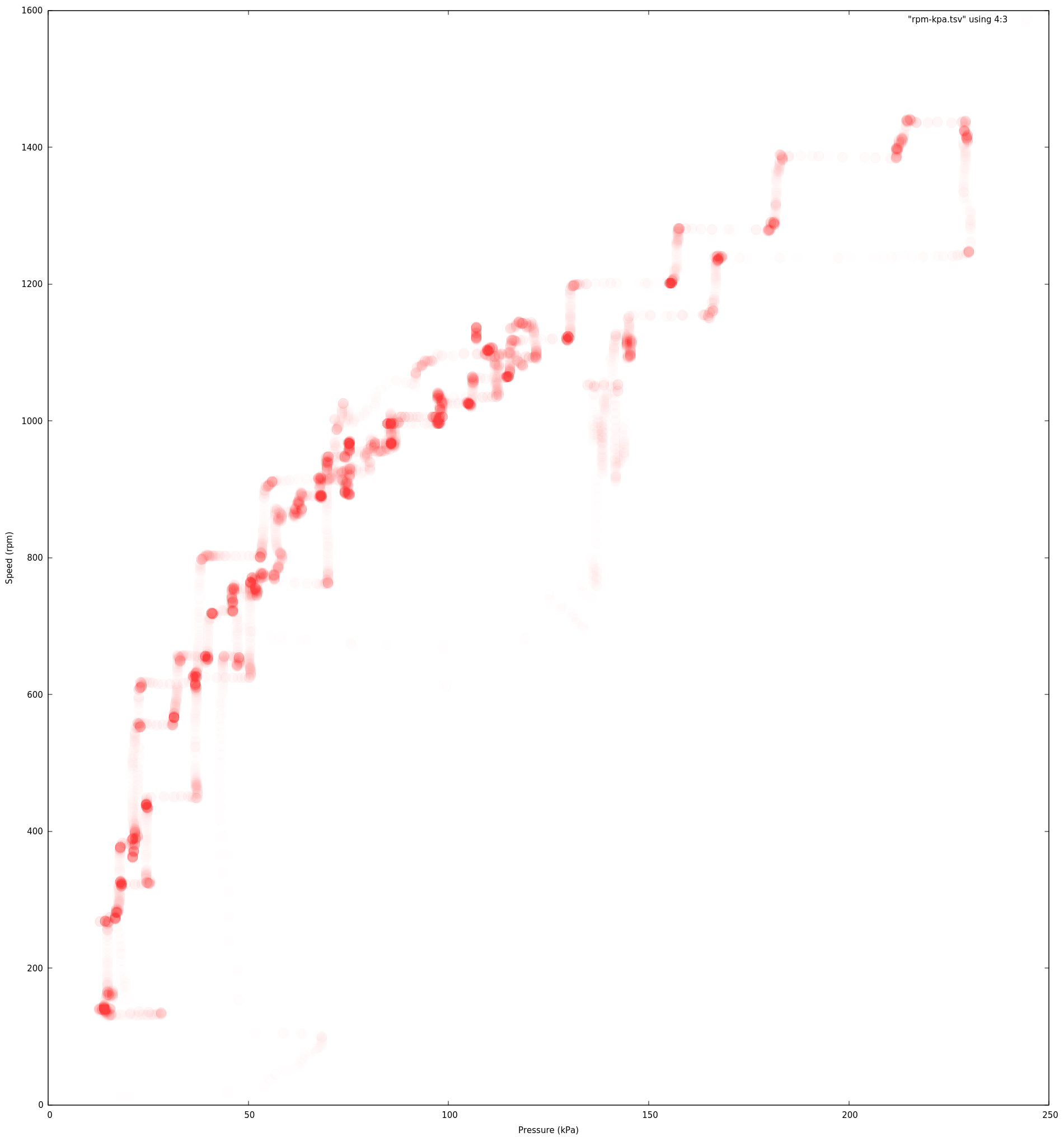 So then we can draw a scatter plot of speed-vs-pressure from every datapoint:
