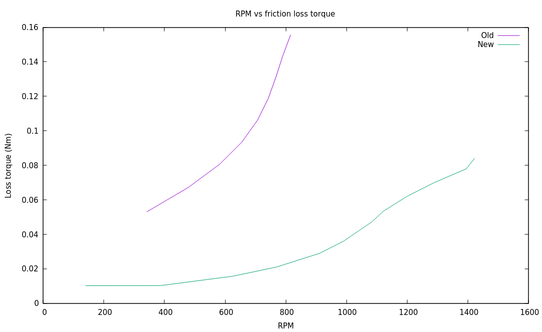 Because the engine now runs more freely, it can both run slower without stalling and run faster on any given supply pressure. So the range of recorded speeds is larger, and the friction is lower at all speeds.