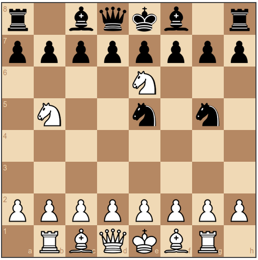 | 19:00 | white f pawn has been captured, black only has 1 a pawn, black: c3 |