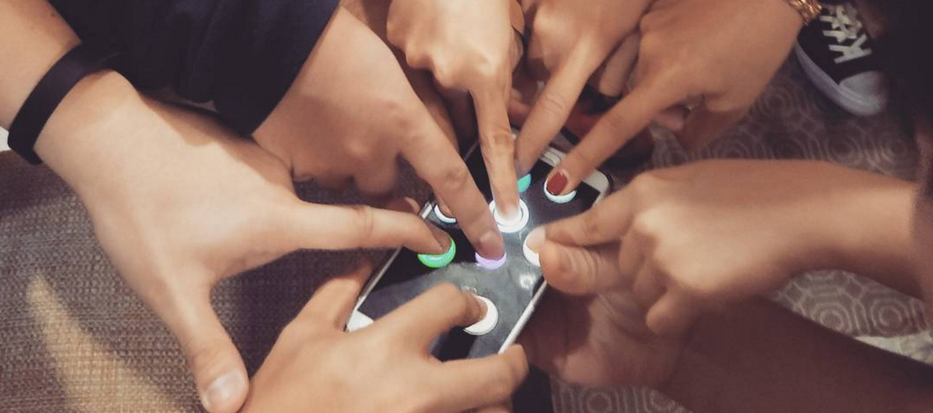 The watch doesn't have a multitouch screen, and even if it did it would be a bit unwieldy asking multiple people all to put one finger on the watch screen. So instead it just distributes segments in a circle around the outside of the screen. The intention is that the group would be seated in a circle, and it would be clear which position corresponds to which person.