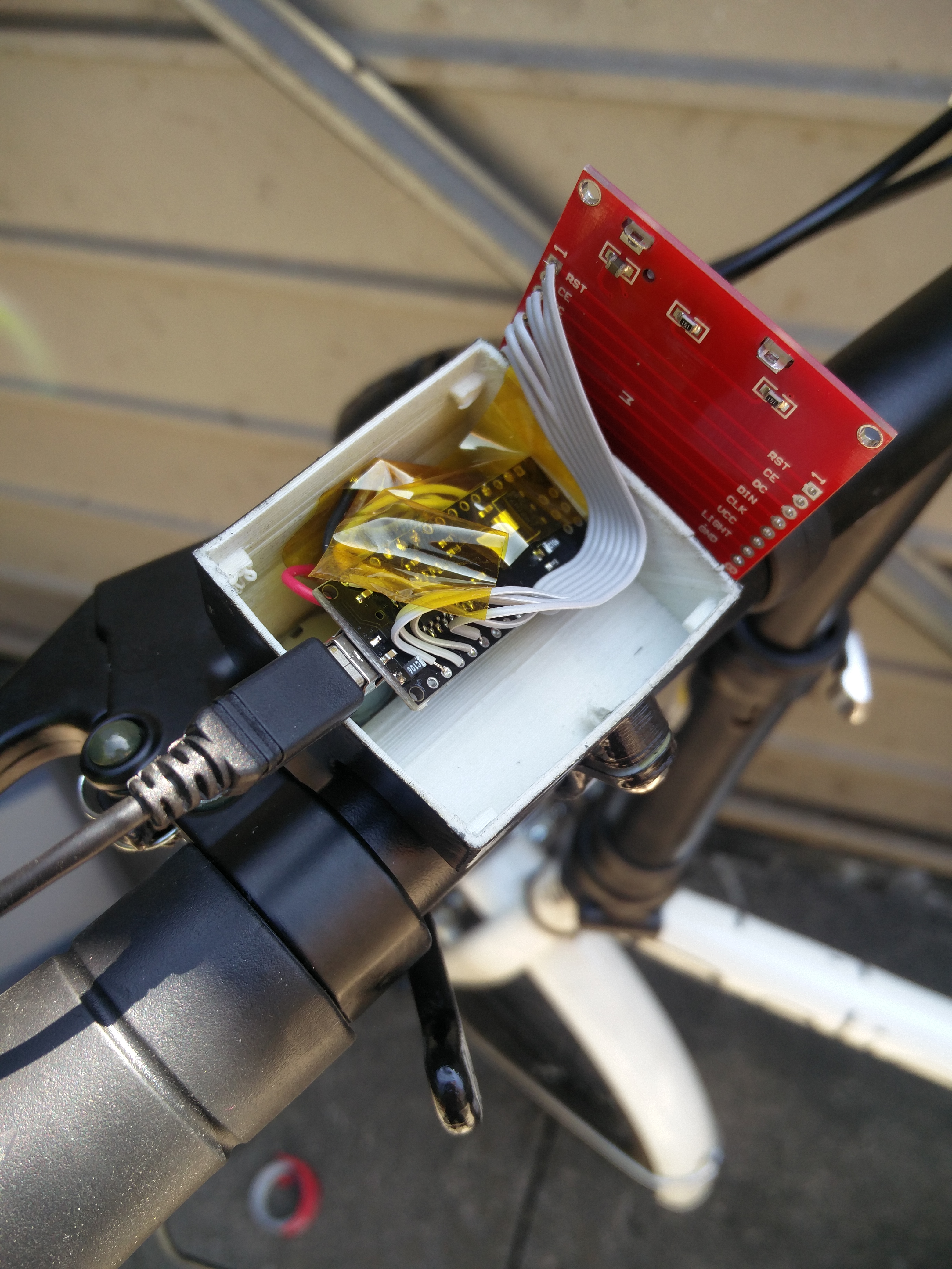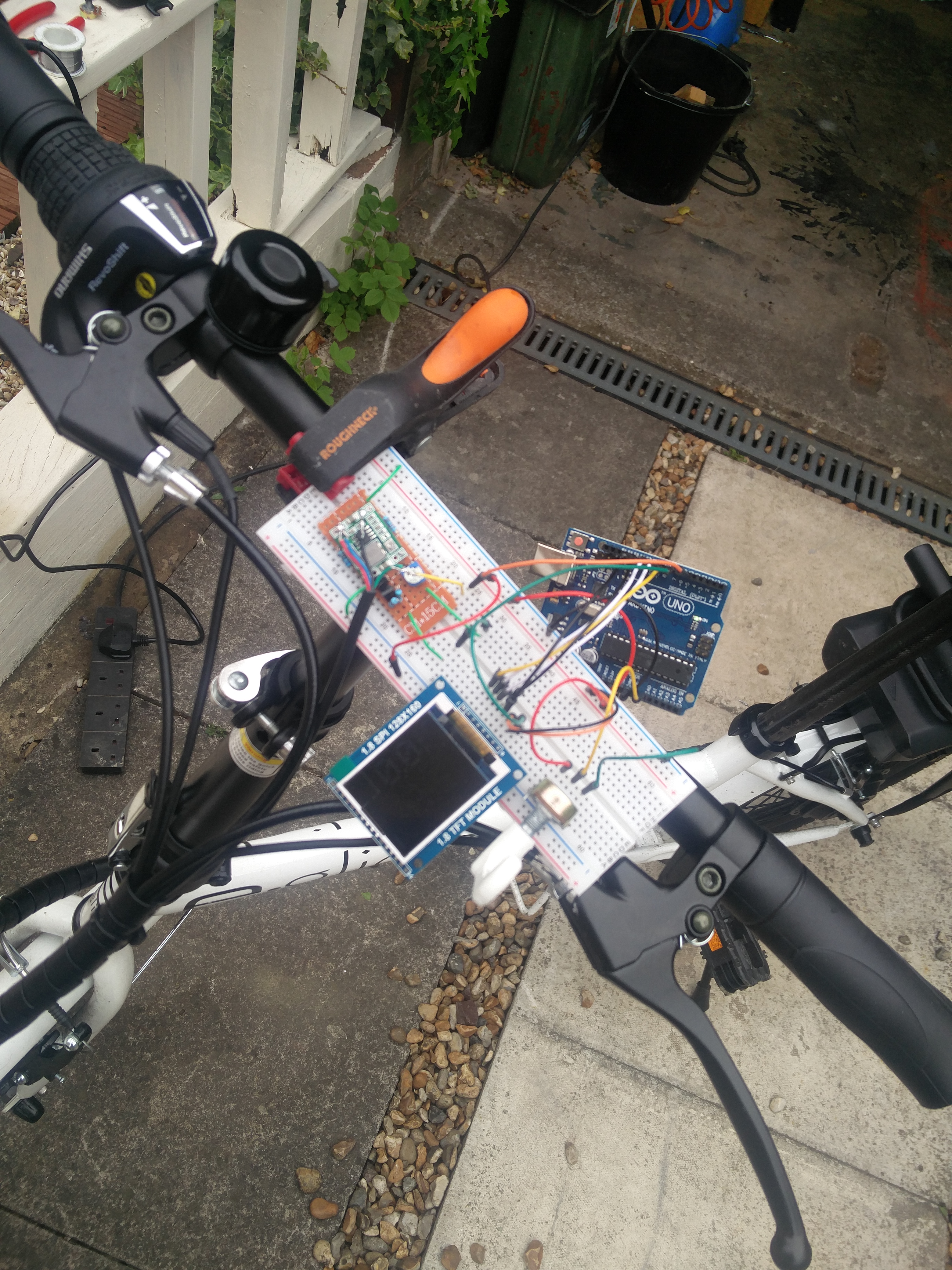 I wrote most of the code while waiting for parts to arrive, then assembled it on a breadboard and took it outside to test on the bike.
