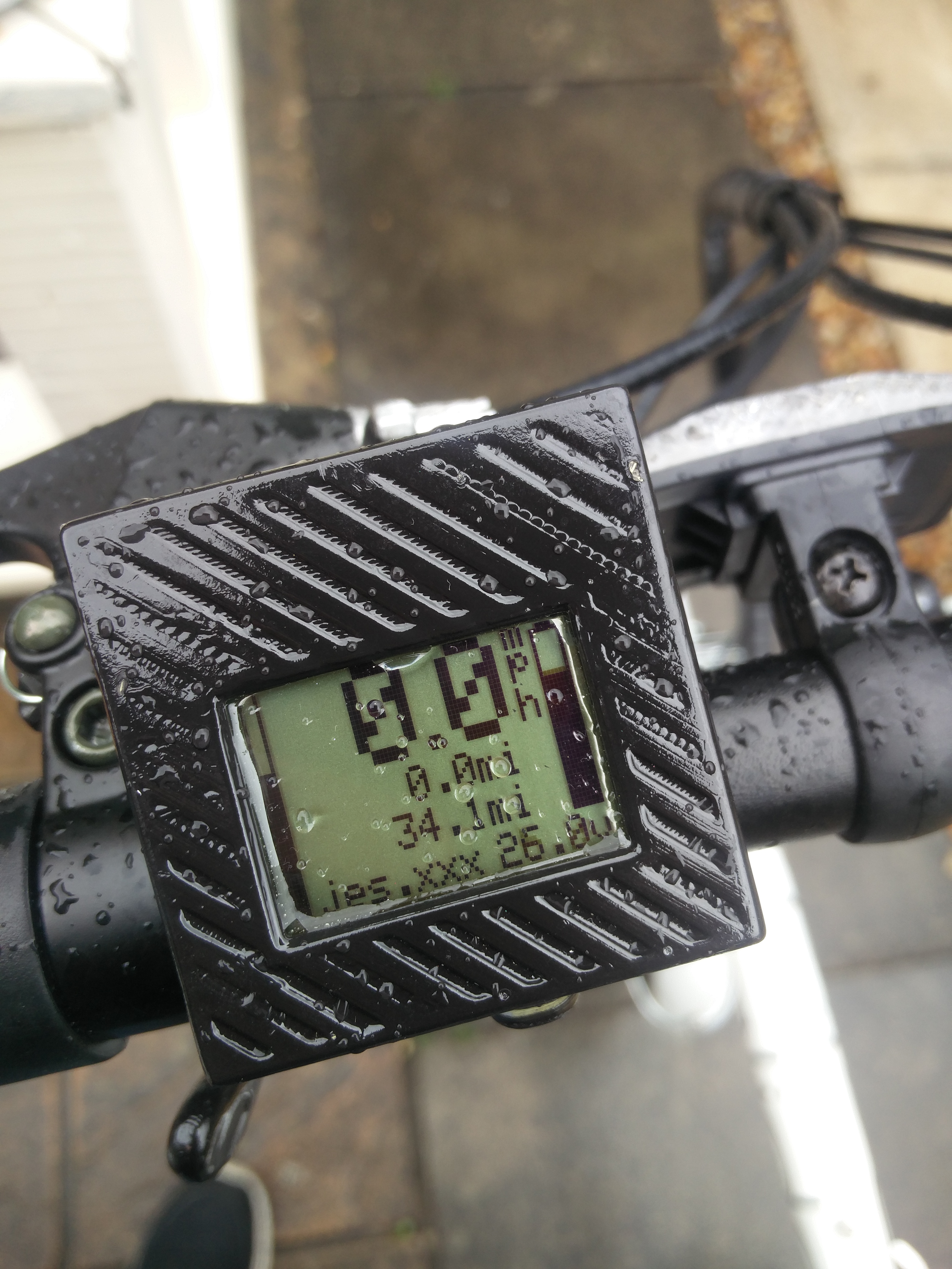 I am quite happy with the magnet pickup, and the handlebar clamp, and the finishing technique (while time-consuming) produces a good result. But the actual design of the enclosure is very boxy and obviously homemade, which is not what I wanted. And unfortunately if the edges were more rounded it would be even larger than it already is as it's built down to the dimensions of the circuit board the LCD is mounted on.