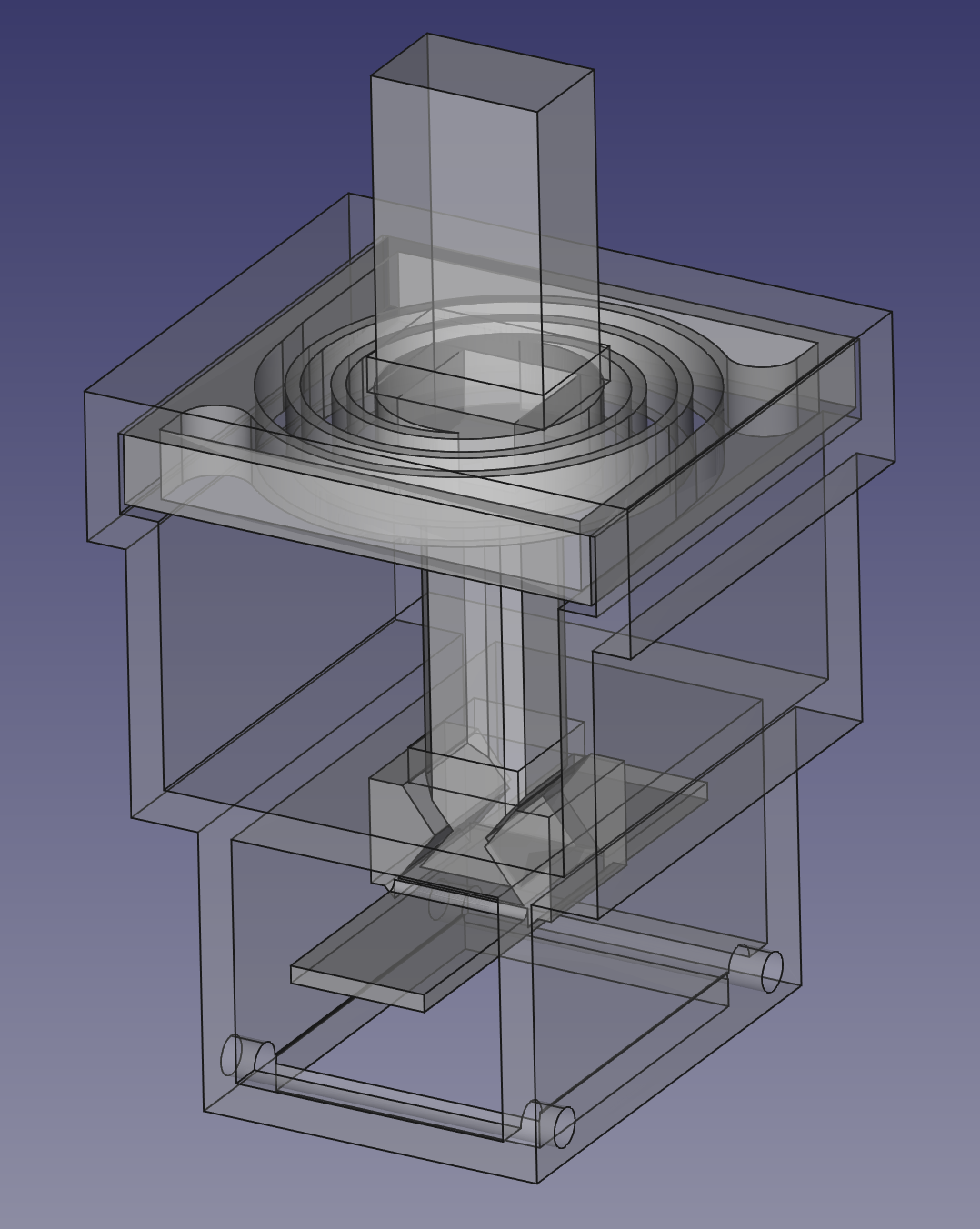 I wonder how easy it would be to use Finite Element Analysis to create an accurate animation of how the spring moves. Or even better, to get an accurate prediction of the switch activation force. I'd probably need to fuse all the parts together at the places where they join, fix the outer case in space, and apply a downwards force on the plunger. It might be a bit harder than that actually due to the preload on the spring (it is stretched out a bit even in the rest position). Might be worth having a go.