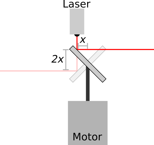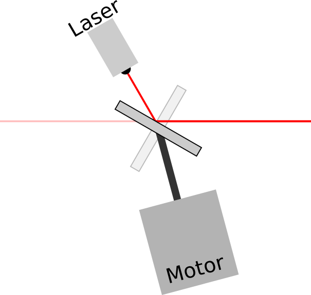 If I end up making one of these, then I would be tempted to tilt everything like this on purpose just for the extra challenge, because it's funny & surprising that it can still work. You just need to make sure that the laser beam intersects the mirror exactly at the centre of rotation, which could be achieved by allowing for some adjustment in the vertical position of the motor.