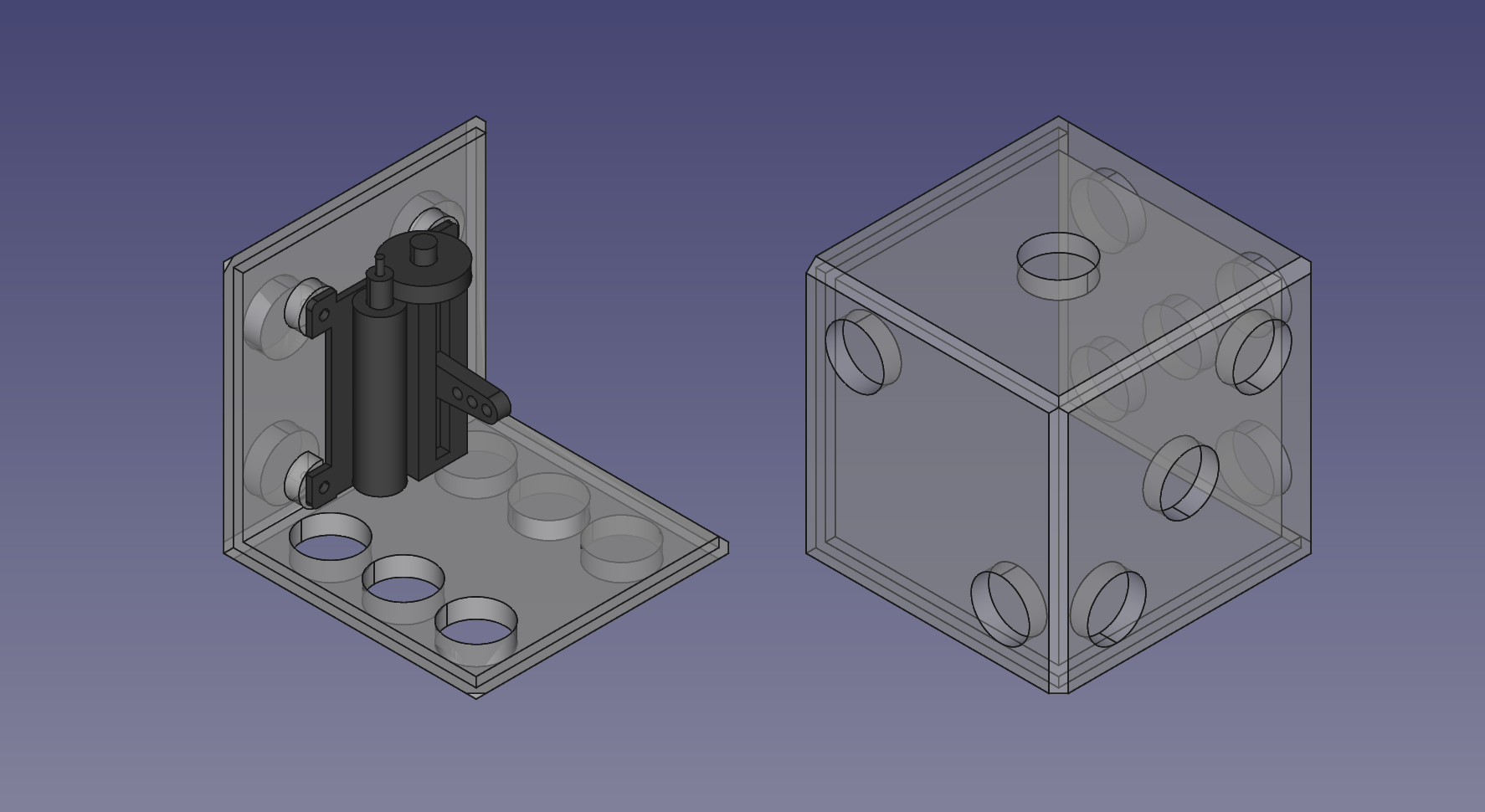I modelled a die, split into 2 parts, which I could mount the servo inside:
