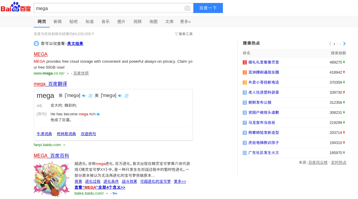 In contrast to all of the above, both Yandex and Baidu come up with mega.co.nz on the first page of results: