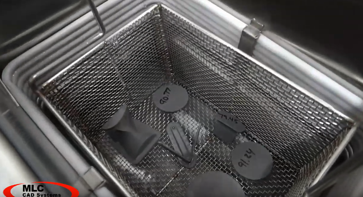 As far as I can tell, you just soak the part in an appropriate solvent (more on this later) for a while, until most of the binder has gone. You can check how much binder remains by weighing the part: when it has reduced in mass (by whatever percentage the binder is by mass), you know all the binder is gone. Although, I suspect you don't actually want to remove 100% of the binder as then you'd just be left with a pile of powder. In the picture, the operator has labelled each part with its original mass before washing.